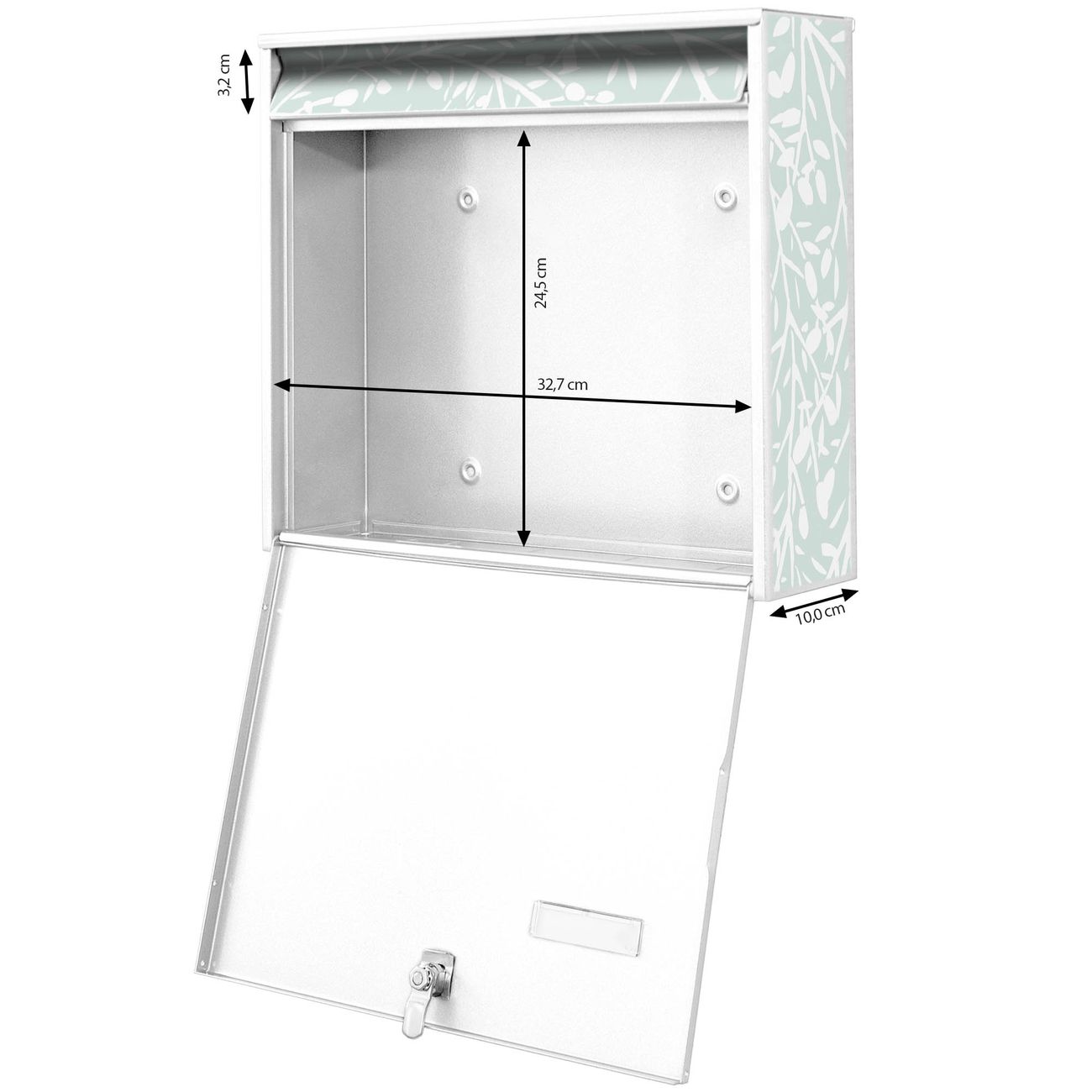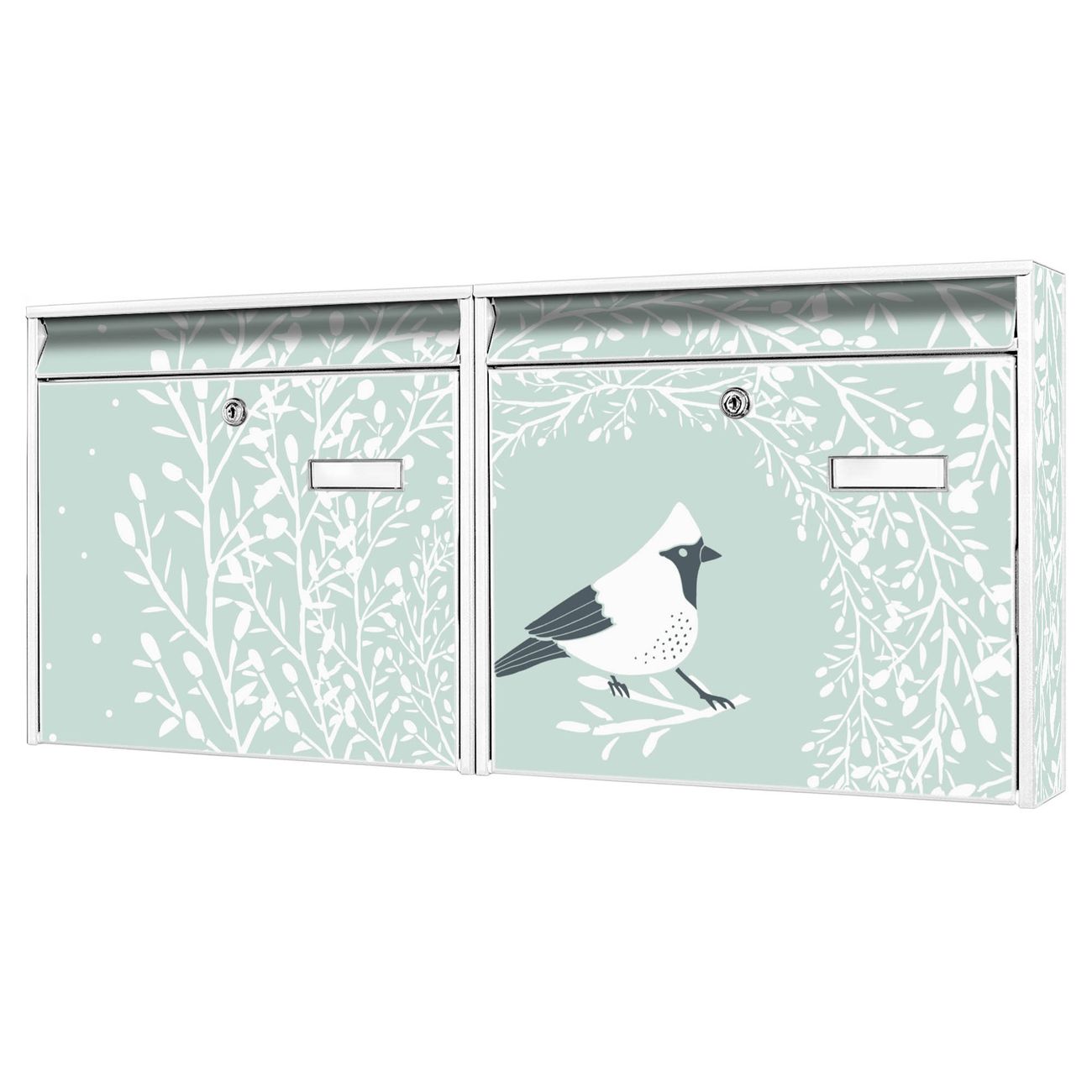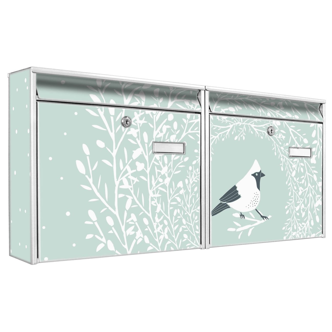 FUNKTION: Die Burg Wächter doppel Briefkastenanlage mit Motiv Vogel im Kranz bietet Ihnen ein großes Fassungsvermögen, sodass auch A4 Sendungen eingeworfen werden können. Das Namensschild lässt sich individuell beschriften. DESIGN: Die 2 Briefkästen mit Vogel im Kranz Motiv haben ein sehr ansprechendes und zeitloses Design. Heben Sie Sich von der tristen grauen Masse ab, ohne auf Funktionalität zu verzichten. Sie erhalten 2 Schlüssel sowie das Montagematerial. DETAILS: Der Doppelbriefkasten besteht aus verzinktem Stahl weiß. Er ist 72,5cm x 32,2cm x 10cm groß. Das Motiv besteht aus einer wetter- und UV-festen Folie, die Ihren Briefkasten zusätzlich vor Kratzern schützt. NUTZEN: Die stabile Bauart sowie die Wetterfestigkeit machen diese doppel Briefkästen zu einem zuverlässigen Begleiter im Alltag. Effektvoll in Reihe gehangen schmückt die Anlage jede Hauswand. BANJADO: Ihr Briefkasten wird in Sachsen in einer kleinen Manufaktur von Hand veredelt. Die Motivfolie ist lösungsmittelfrei und schutzlaminiert für einen langen Halt. Wir legen großen Wert auf die Verbindung von Funktionalität und Design. Sie erhalten Handarbeit aus Sachsen.