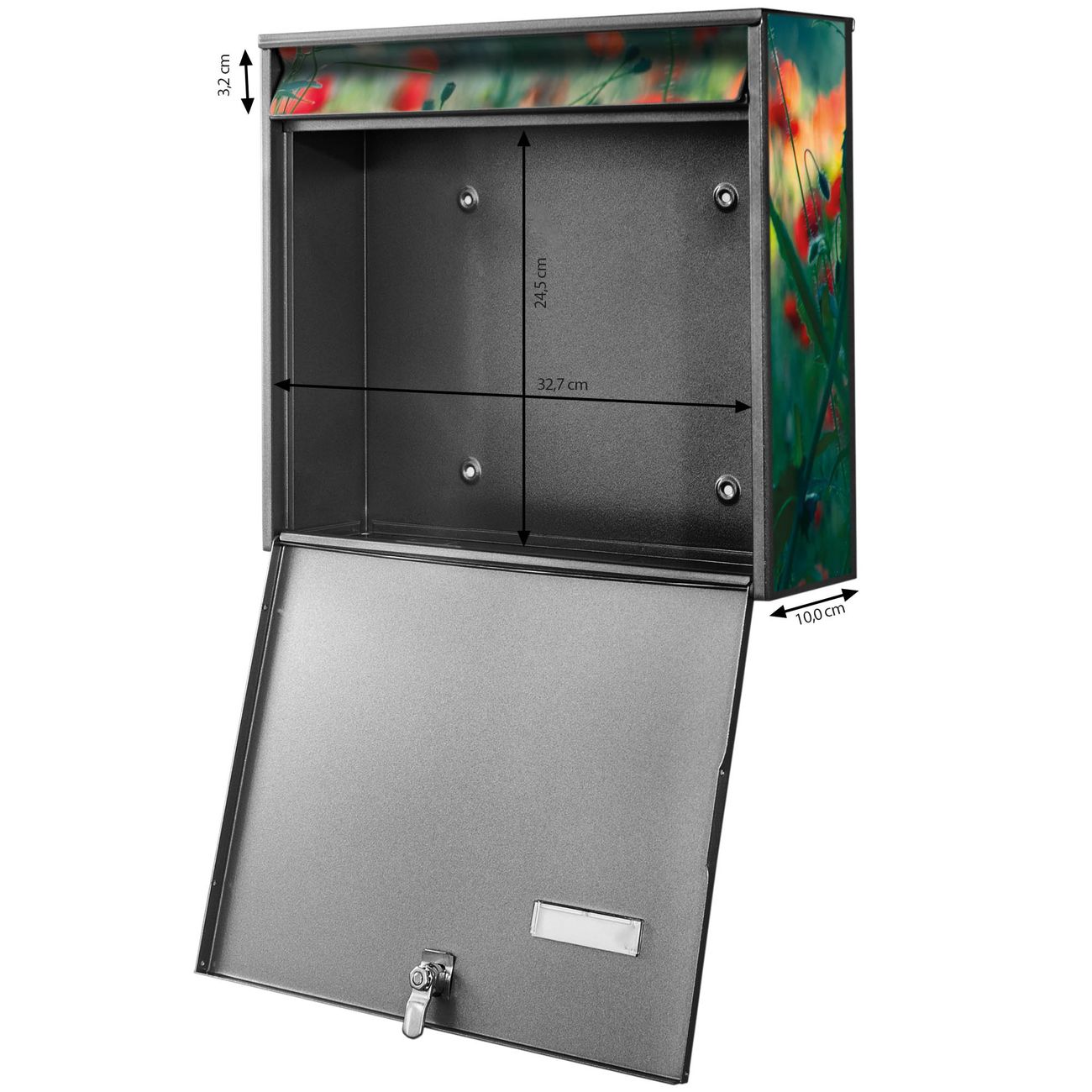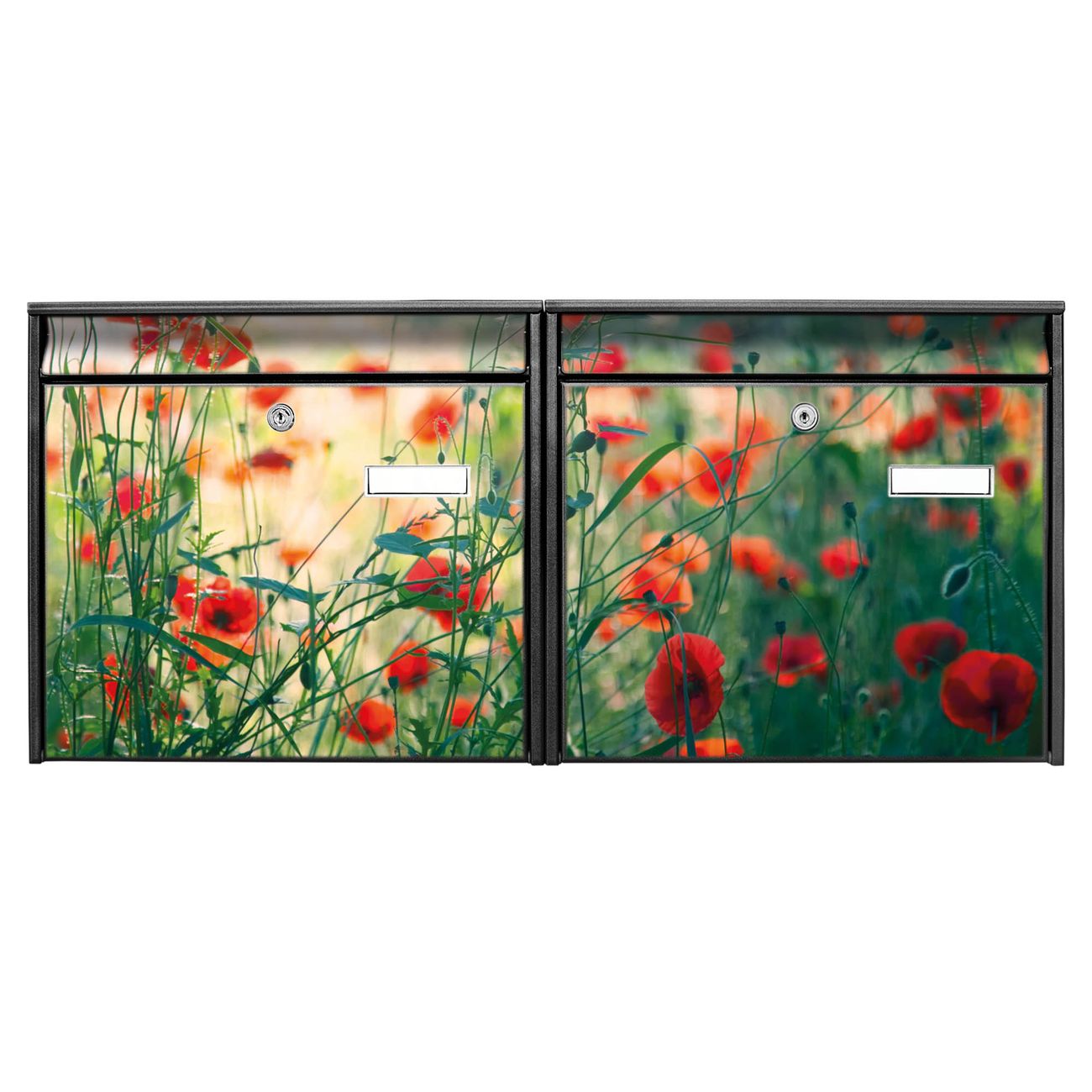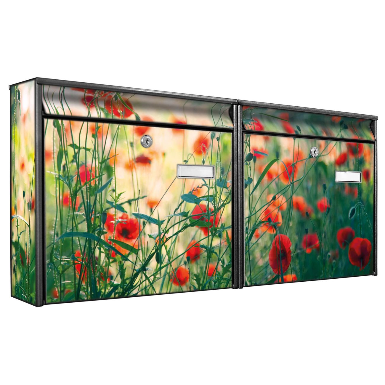 FUNKTION: Die Burg Wächter doppel Briefkastenanlage mit Motiv Waldmohn bietet Ihnen ein großes Fassungsvermögen, sodass auch A4 Sendungen eingeworfen werden können. Das Namensschild lässt sich individuell beschriften. DESIGN: Die 2 Briefkästen mit Waldmohn Motiv haben ein sehr ansprechendes und zeitloses Design. Heben Sie Sich von der tristen grauen Masse ab, ohne auf Funktionalität zu verzichten. Sie erhalten 2 Schlüssel sowie das Montagematerial. DETAILS: Der Doppelbriefkasten besteht aus verzinktem Stahl weiß. Er ist 72,5cm x 32,2cm x 10cm groß. Das Motiv besteht aus einer wetter- und UV-festen Folie, die Ihren Briefkasten zusätzlich vor Kratzern schützt. NUTZEN: Die stabile Bauart sowie die Wetterfestigkeit machen diese doppel Briefkästen zu einem zuverlässigen Begleiter im Alltag. Effektvoll in Reihe gehangen schmückt die Anlage jede Hauswand. BANJADO: Ihr Briefkasten wird in Sachsen in einer kleinen Manufaktur von Hand veredelt. Die Motivfolie ist lösungsmittelfrei und schutzlaminiert für einen langen Halt. Wir legen großen Wert auf die Verbindung von Funktionalität und Design. Sie erhalten Handarbeit aus Sachsen.