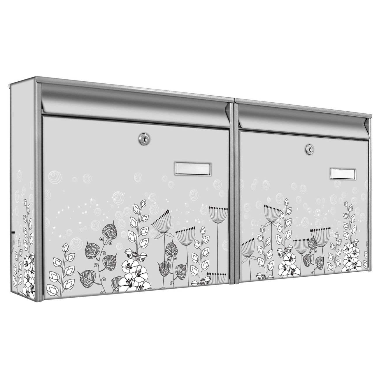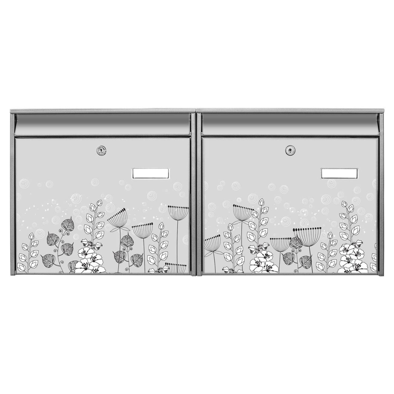 FUNKTION: Die Burg Wächter doppel Briefkastenanlage mit Motiv Wegesrand bietet Ihnen ein großes Fassungsvermögen, sodass auch A4 Sendungen eingeworfen werden können. Das Namensschild lässt sich individuell beschriften. DESIGN: Die 2 Briefkästen mit Wegesrand Motiv haben ein sehr ansprechendes und zeitloses Design. Heben Sie Sich von der tristen grauen Masse ab, ohne auf Funktionalität zu verzichten. Sie erhalten 2 Schlüssel sowie das Montagematerial. DETAILS: Der Doppelbriefkasten besteht aus verzinktem Stahl weiß. Er ist 72,5cm x 32,2cm x 10cm groß. Das Motiv besteht aus einer wetter- und UV-festen Folie, die Ihren Briefkasten zusätzlich vor Kratzern schützt. NUTZEN: Die stabile Bauart sowie die Wetterfestigkeit machen diese doppel Briefkästen zu einem zuverlässigen Begleiter im Alltag. Effektvoll in Reihe gehangen schmückt die Anlage jede Hauswand. BANJADO: Ihr Briefkasten wird in Sachsen in einer kleinen Manufaktur von Hand veredelt. Die Motivfolie ist lösungsmittelfrei und schutzlaminiert für einen langen Halt. Wir legen großen Wert auf die Verbindung von Funktionalität und Design. Sie erhalten Handarbeit aus Sachsen.