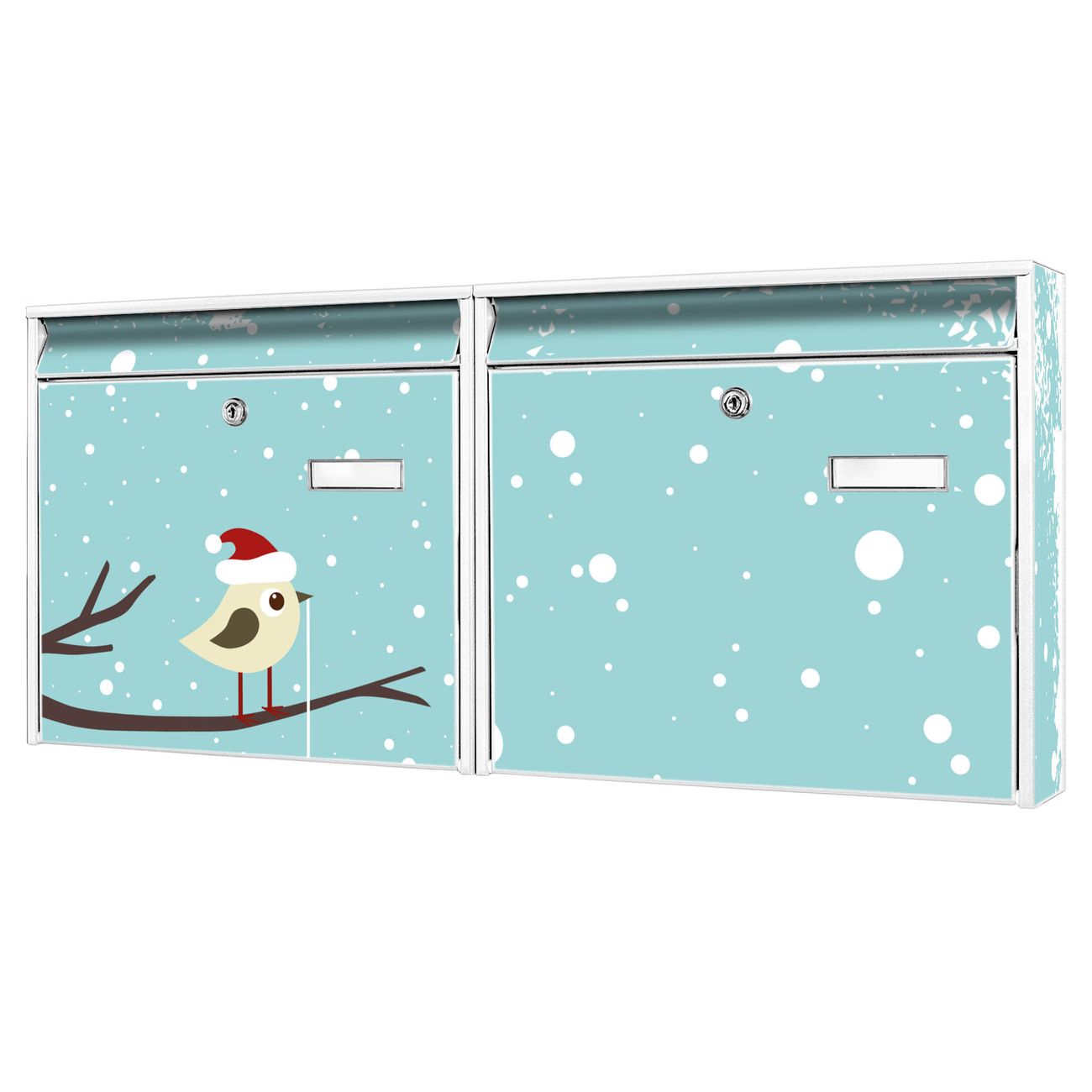 FUNKTION: Die Burg Wächter doppel Briefkastenanlage mit Motiv Weihnachten bietet Ihnen ein großes Fassungsvermögen, sodass auch A4 Sendungen eingeworfen werden können. Das Namensschild lässt sich individuell beschriften. DESIGN: Die 2 Briefkästen mit Weihnachten Motiv haben ein sehr ansprechendes und zeitloses Design. Heben Sie Sich von der tristen grauen Masse ab, ohne auf Funktionalität zu verzichten. Sie erhalten 2 Schlüssel sowie das Montagematerial. DETAILS: Der Doppelbriefkasten besteht aus verzinktem Stahl weiß. Er ist 72,5cm x 32,2cm x 10cm groß. Das Motiv besteht aus einer wetter- und UV-festen Folie, die Ihren Briefkasten zusätzlich vor Kratzern schützt. NUTZEN: Die stabile Bauart sowie die Wetterfestigkeit machen diese doppel Briefkästen zu einem zuverlässigen Begleiter im Alltag. Effektvoll in Reihe gehangen schmückt die Anlage jede Hauswand. BANJADO: Ihr Briefkasten wird in Sachsen in einer kleinen Manufaktur von Hand veredelt. Die Motivfolie ist lösungsmittelfrei und schutzlaminiert für einen langen Halt. Wir legen großen Wert auf die Verbindung von Funktionalität und Design. Sie erhalten Handarbeit aus Sachsen.