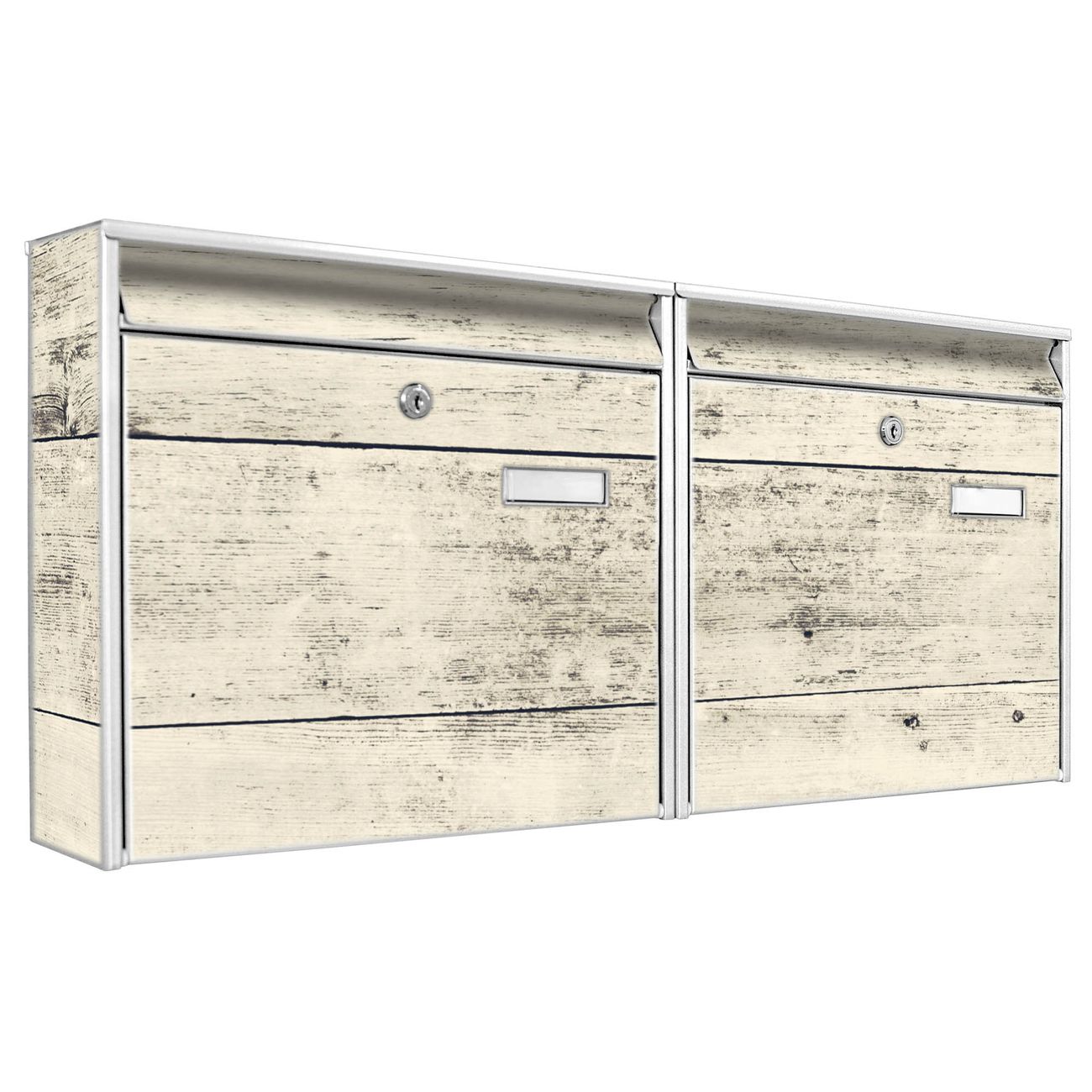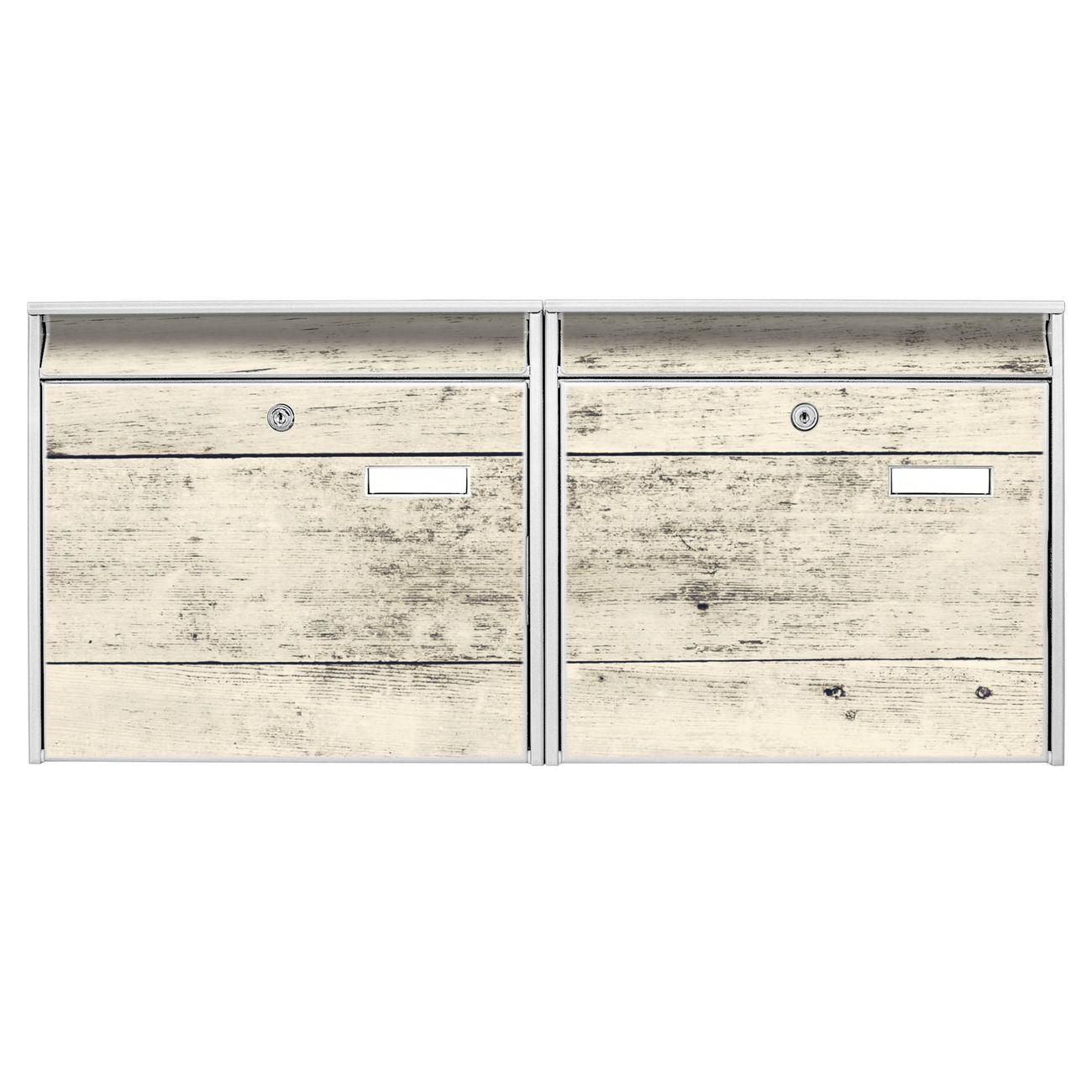 FUNKTION: Die Burg Wächter doppel Briefkastenanlage mit Motiv Weiße Planken H bietet Ihnen ein großes Fassungsvermögen, sodass auch A4 Sendungen eingeworfen werden können. Das Namensschild lässt sich individuell beschriften. DESIGN: Die 2 Briefkästen mit Weiße Planken H Motiv haben ein sehr ansprechendes und zeitloses Design. Heben Sie Sich von der tristen grauen Masse ab, ohne auf Funktionalität zu verzichten. Sie erhalten 2 Schlüssel sowie das Montagematerial. DETAILS: Der Doppelbriefkasten besteht aus verzinktem Stahl weiß. Er ist 72,5cm x 32,2cm x 10cm groß. Das Motiv besteht aus einer wetter- und UV-festen Folie, die Ihren Briefkasten zusätzlich vor Kratzern schützt. NUTZEN: Die stabile Bauart sowie die Wetterfestigkeit machen diese doppel Briefkästen zu einem zuverlässigen Begleiter im Alltag. Effektvoll in Reihe gehangen schmückt die Anlage jede Hauswand. BANJADO: Ihr Briefkasten wird in Sachsen in einer kleinen Manufaktur von Hand veredelt. Die Motivfolie ist lösungsmittelfrei und schutzlaminiert für einen langen Halt. Wir legen großen Wert auf die Verbindung von Funktionalität und Design. Sie erhalten Handarbeit aus Sachsen.