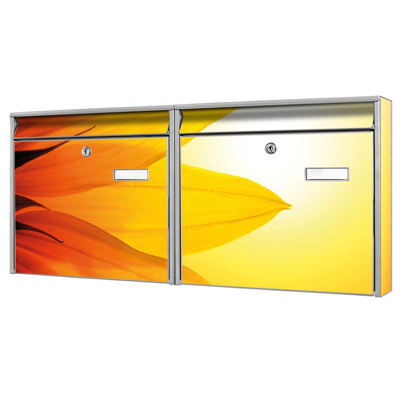 FUNKTION: Die Burg Wächter doppel Briefkastenanlage mit Motiv Zwei Sonnen bietet Ihnen ein großes Fassungsvermögen, sodass auch A4 Sendungen eingeworfen werden können. Das Namensschild lässt sich individuell beschriften. DESIGN: Die 2 Briefkästen mit Zwei Sonnen Motiv haben ein sehr ansprechendes und zeitloses Design. Heben Sie Sich von der tristen grauen Masse ab, ohne auf Funktionalität zu verzichten. Sie erhalten 2 Schlüssel sowie das Montagematerial. DETAILS: Der Doppelbriefkasten besteht aus verzinktem Stahl weiß. Er ist 72,5cm x 32,2cm x 10cm groß. Das Motiv besteht aus einer wetter- und UV-festen Folie, die Ihren Briefkasten zusätzlich vor Kratzern schützt. NUTZEN: Die stabile Bauart sowie die Wetterfestigkeit machen diese doppel Briefkästen zu einem zuverlässigen Begleiter im Alltag. Effektvoll in Reihe gehangen schmückt die Anlage jede Hauswand. BANJADO: Ihr Briefkasten wird in Sachsen in einer kleinen Manufaktur von Hand veredelt. Die Motivfolie ist lösungsmittelfrei und schutzlaminiert für einen langen Halt. Wir legen großen Wert auf die Verbindung von Funktionalität und Design. Sie erhalten Handarbeit aus Sachsen.