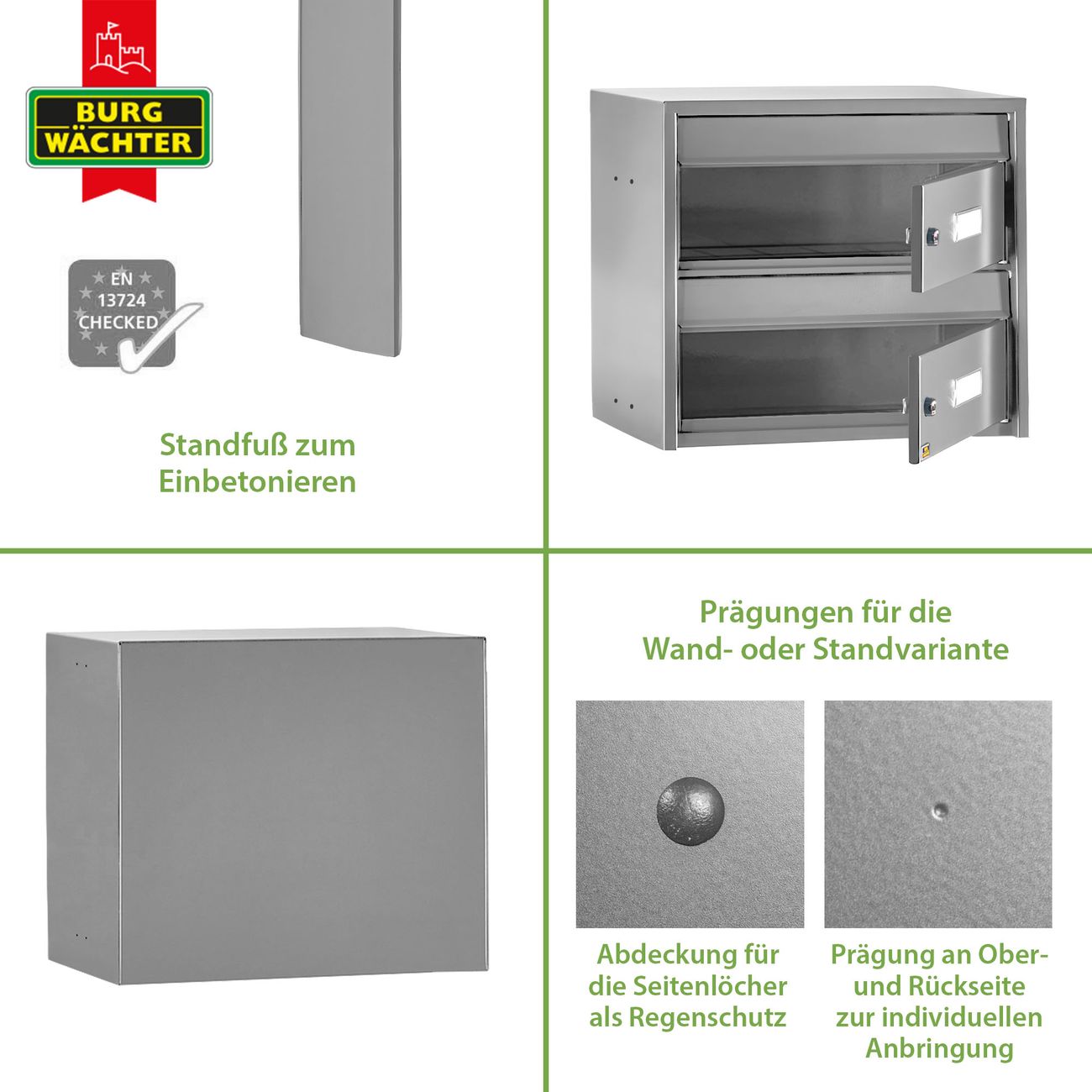 Burg-Wächter Dual Standbriefkasten 2 Parteien Farbe edelstahl
