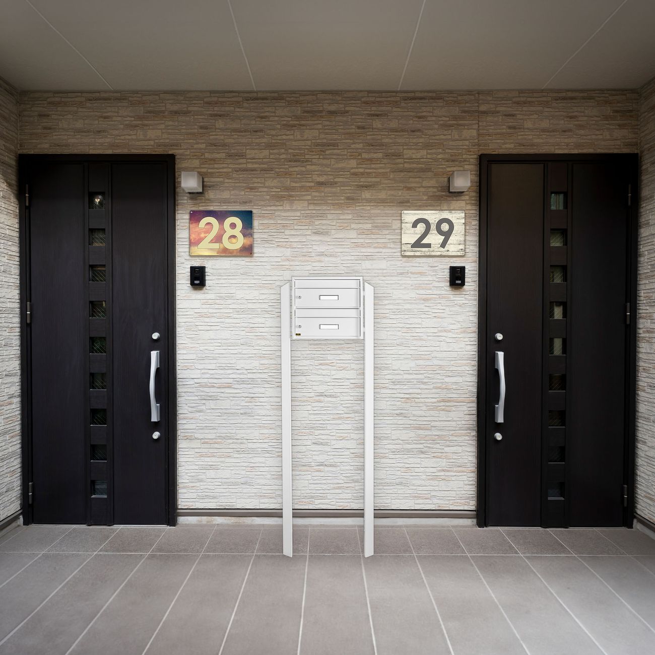 Die Briefkasten Anlage für 2 Parteien hat folgende Abmessungen 55 x 167,2 x 29,2cm. Der Mehrfamilienhaus Briefkasten mit Namensschild ist aus witterungsbeständigem Stahl gefertigt.