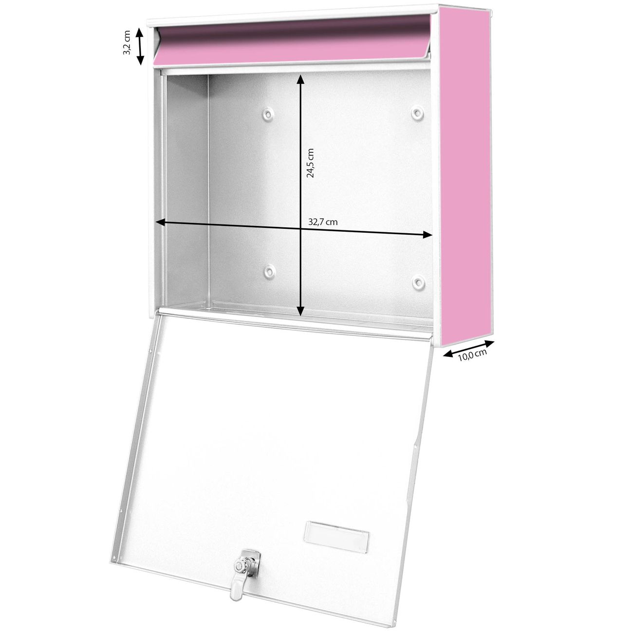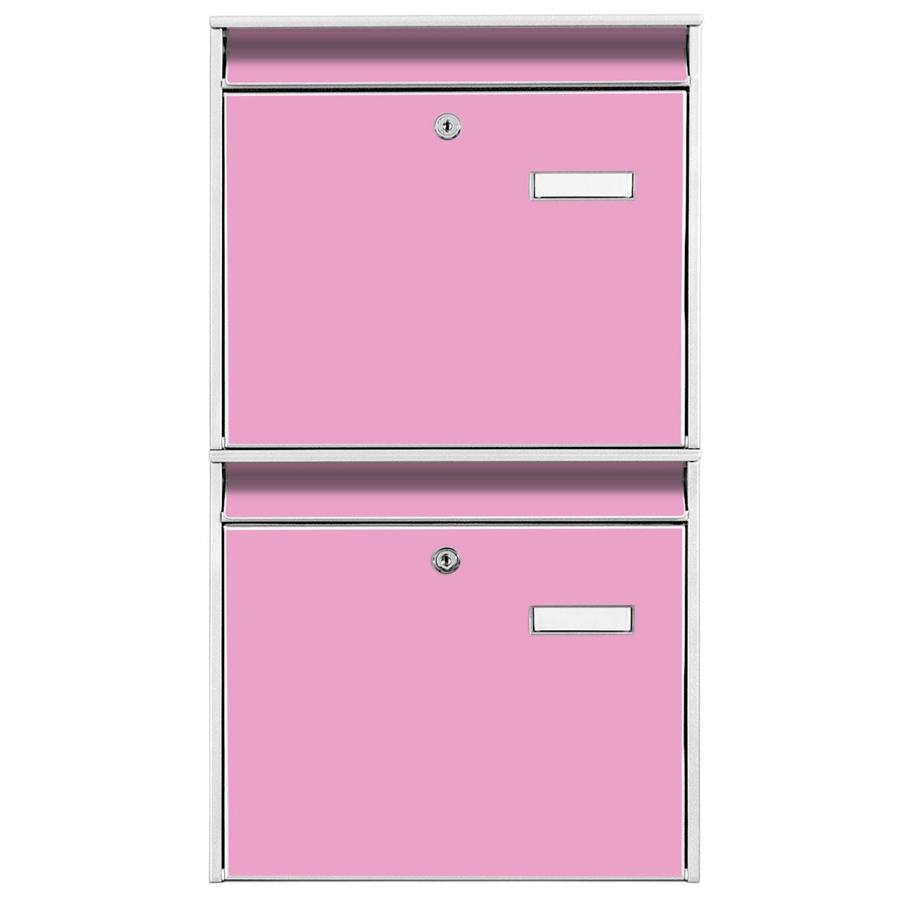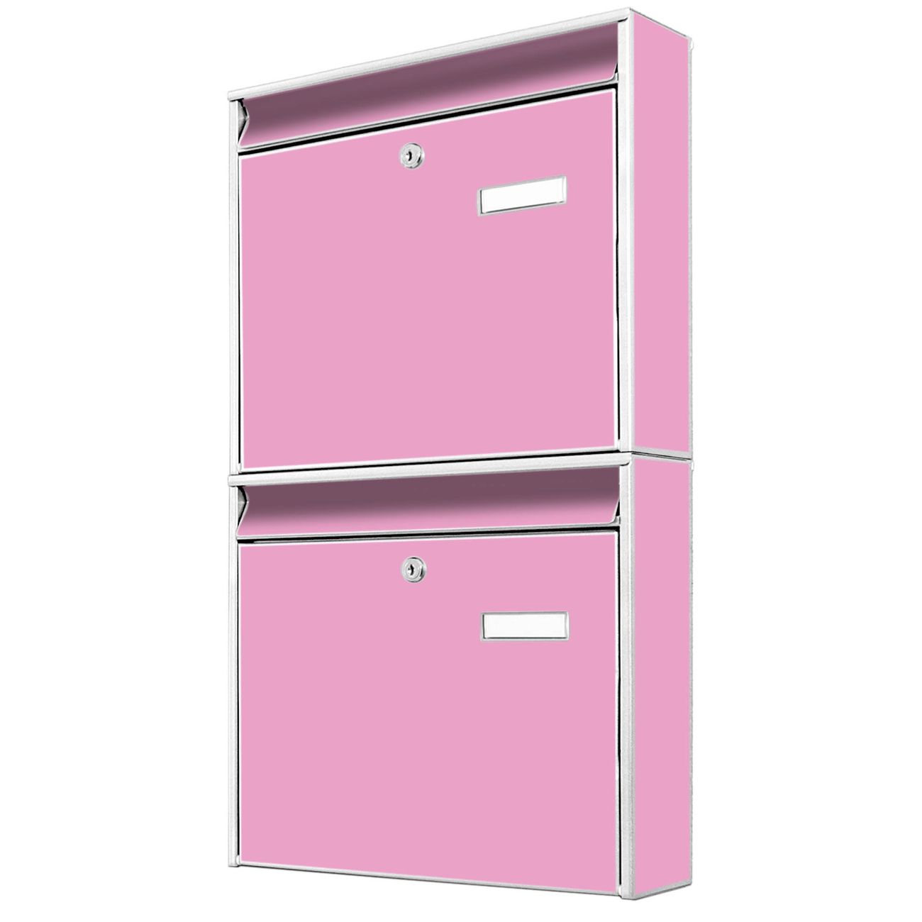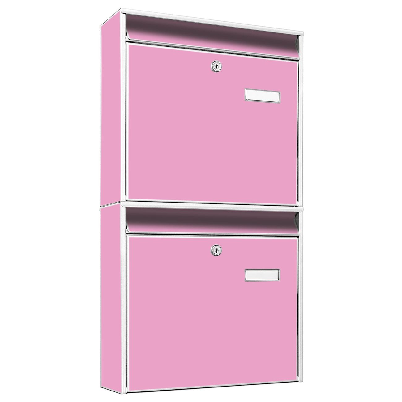 FUNKTION: Die Burg-Wächter Briefkastenanlage mit Farbe Rose bietet Ihnen ausreichend Fassungsvermögen um auch A4 und C4 Sendungen zu empfangen. Das integrierte Namensschild lässt sich individuell beschriften. Wählen Sie aus den Grundfarben weiß, silber und schwarz. DESIGN: Die 2 Briefkästen haben ein ansprechendes und zeitloses Design, ohne dabei auf Funktionalität zu verzichten. Das Material ist sehr stabil, wetterfest und rostfrei. Durch das Farbe Rose werden die Postkästen zu einem Blickfang. DETAILS: Die Postkästen bestehen aus verzinktem Stahl der zusätzlich mit Klarlack versiegelt wurde. Die Kästen sind gesamt 64,5cm hoch, 36,2cm breit und 10cm tief. Das Farbe besteht aus einer wetter- und UV-festen Folie, die Ihren Briefkasten zusätzlich vor Kratzern schützt. Die Postkästen werden mit Montagematerial, je einem Namensschild und je zwei Schlüsseln geliefert. NUTZEN: Das Briefkastenset eignet sich für die Wandmontage, die Größe bietet genügend Platz für Sendungen aller Art. Das zeitlose Design sowie die stabile Bauart bieten Ihnen einen treuen Begleiter für Ihre Post. BANJADO: