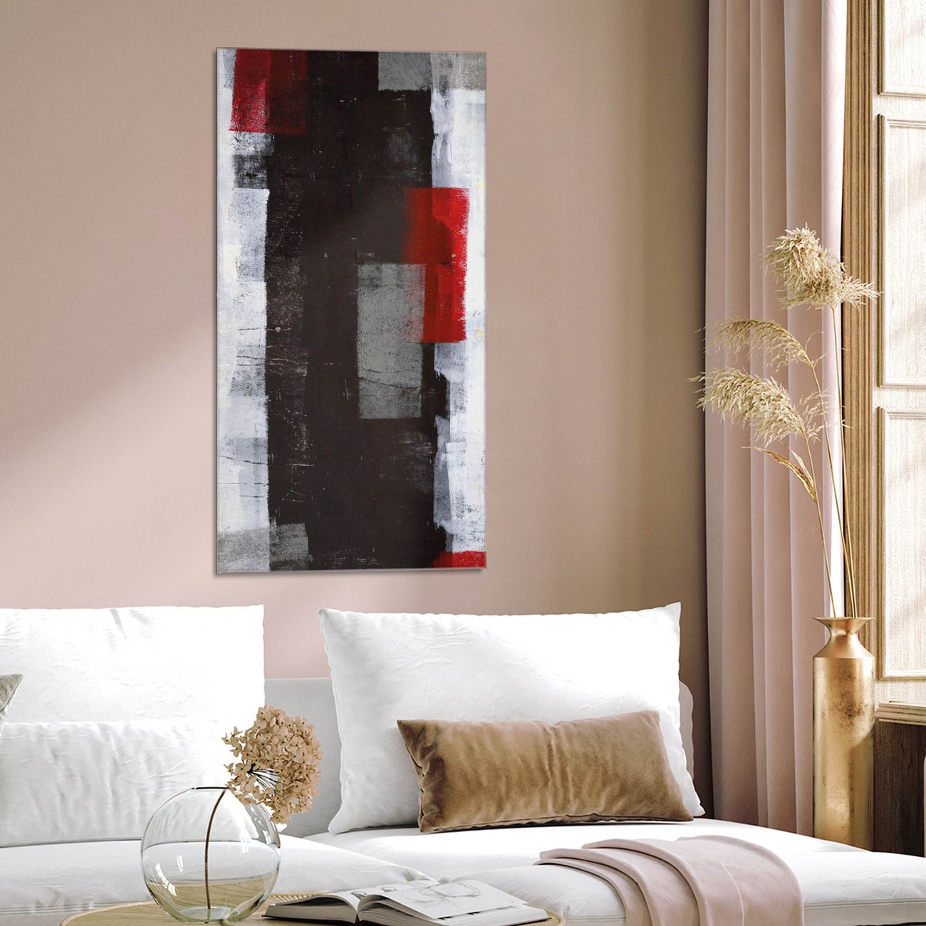 Brillantes Glasbild im Hochformat Abstrakt Rot