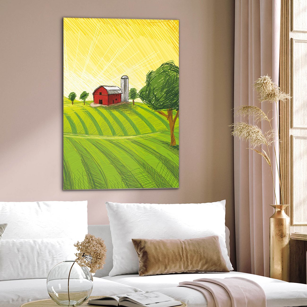 Brillantes Glasbild im Hochformat Auf dem Land