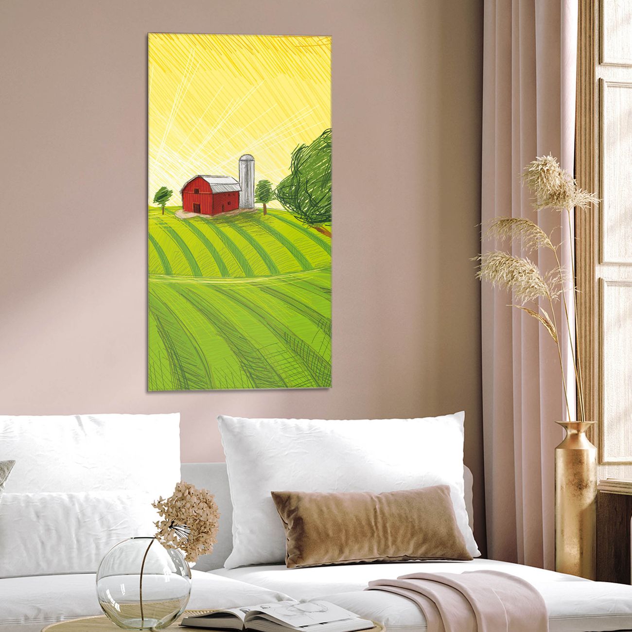 Brillantes Glasbild im Hochformat Auf dem Land