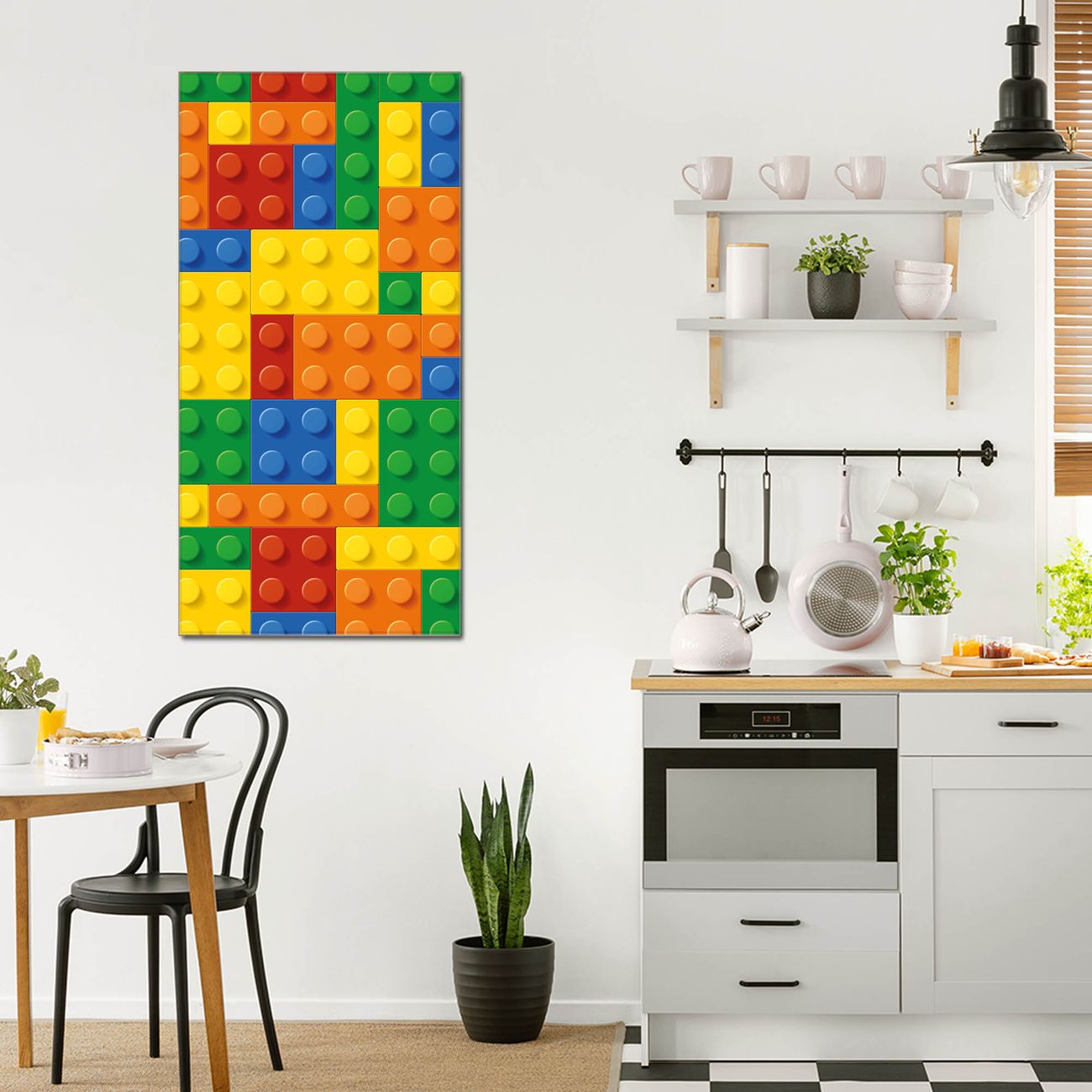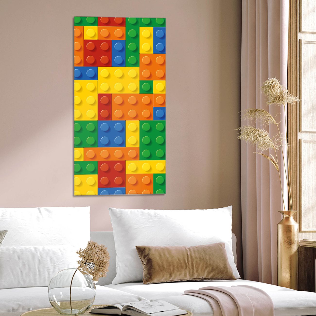 Brillantes Glasbild im Hochformat Bausteine