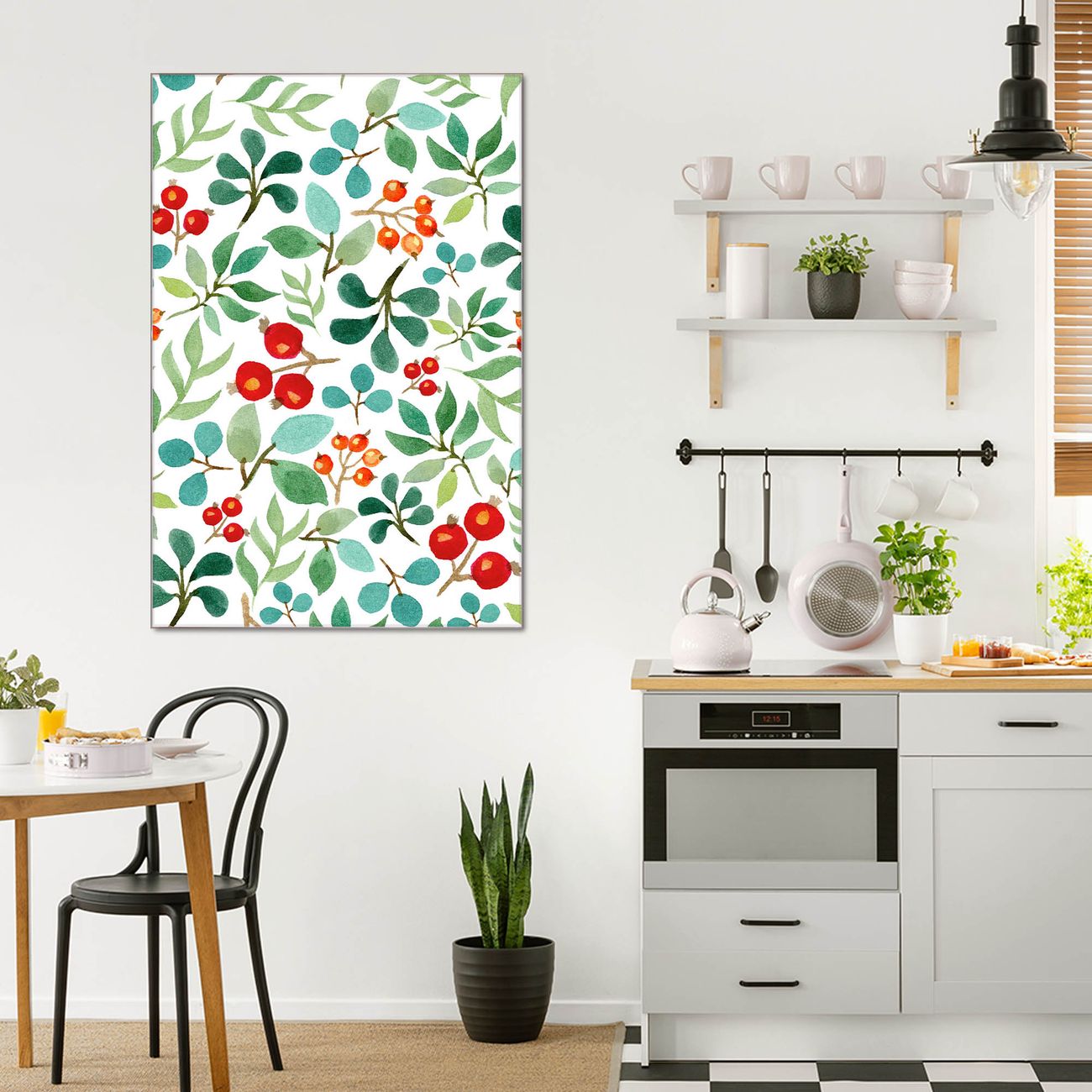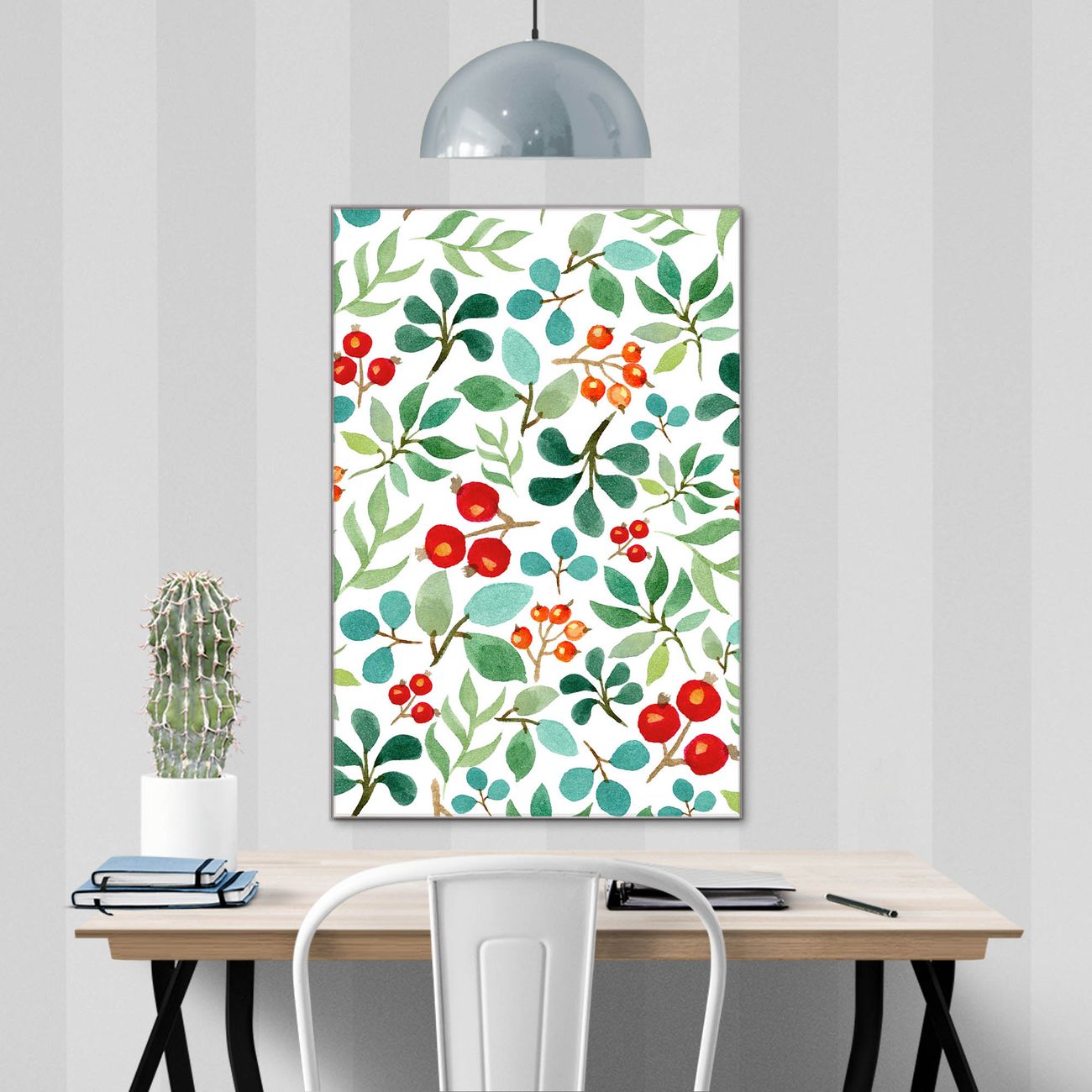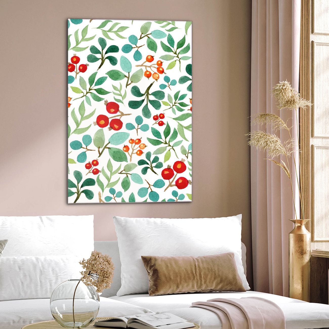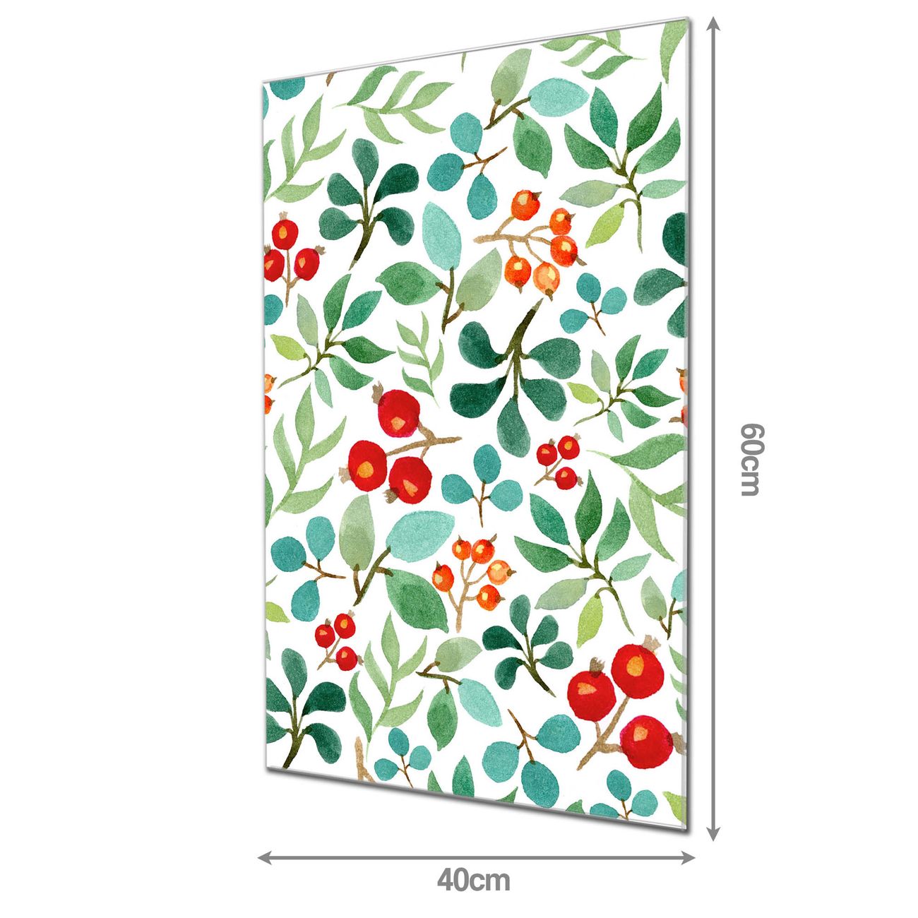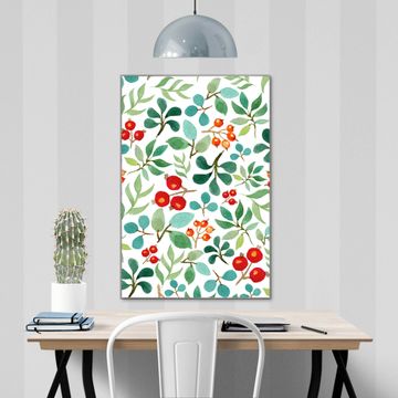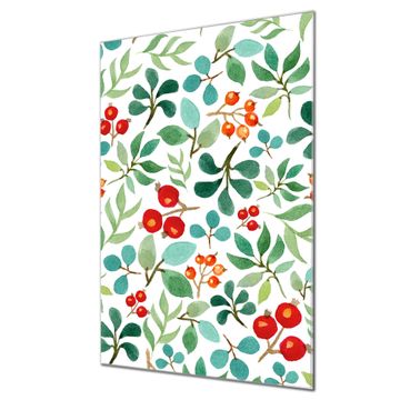Brillantes Glasbild im Hochformat Beeren und Blätter