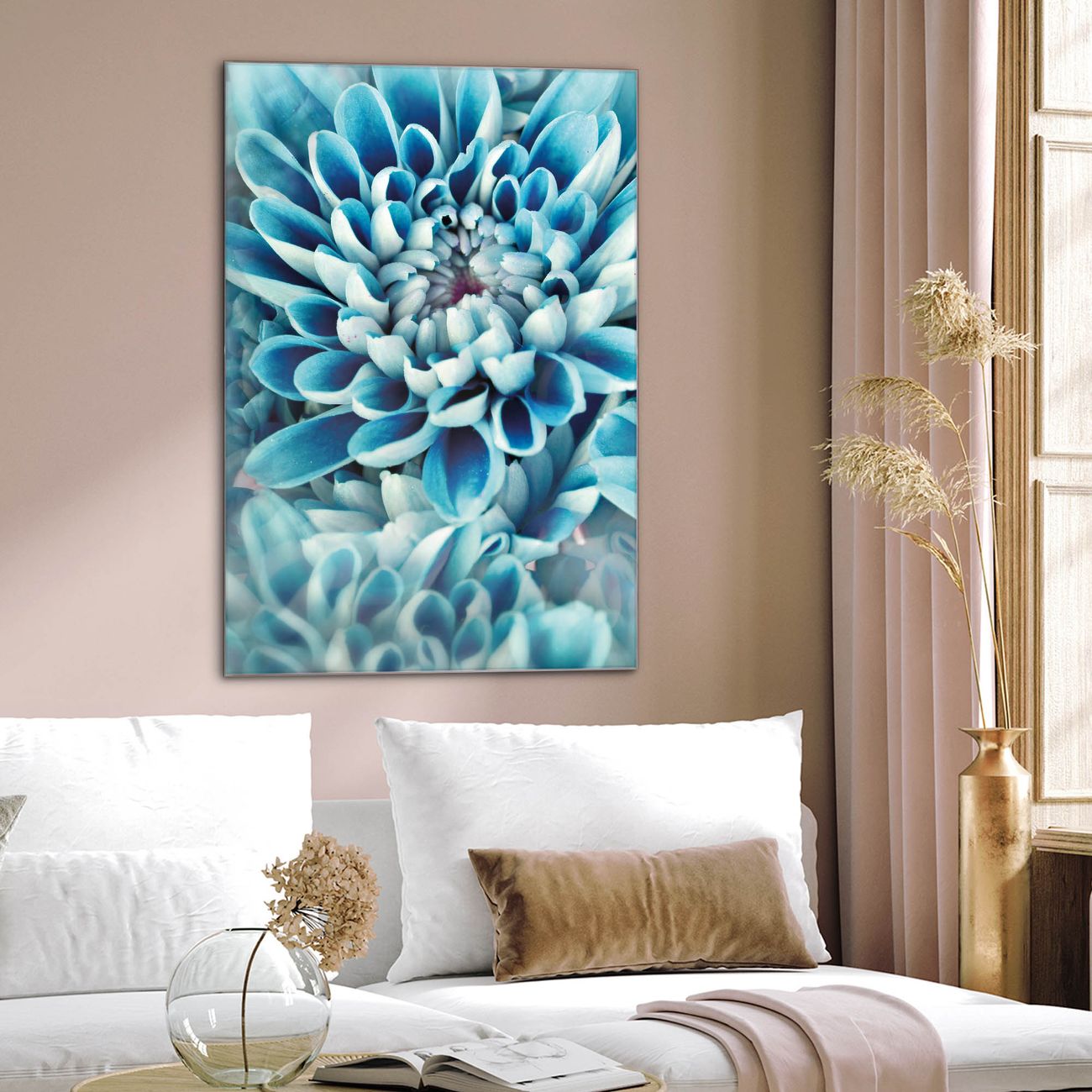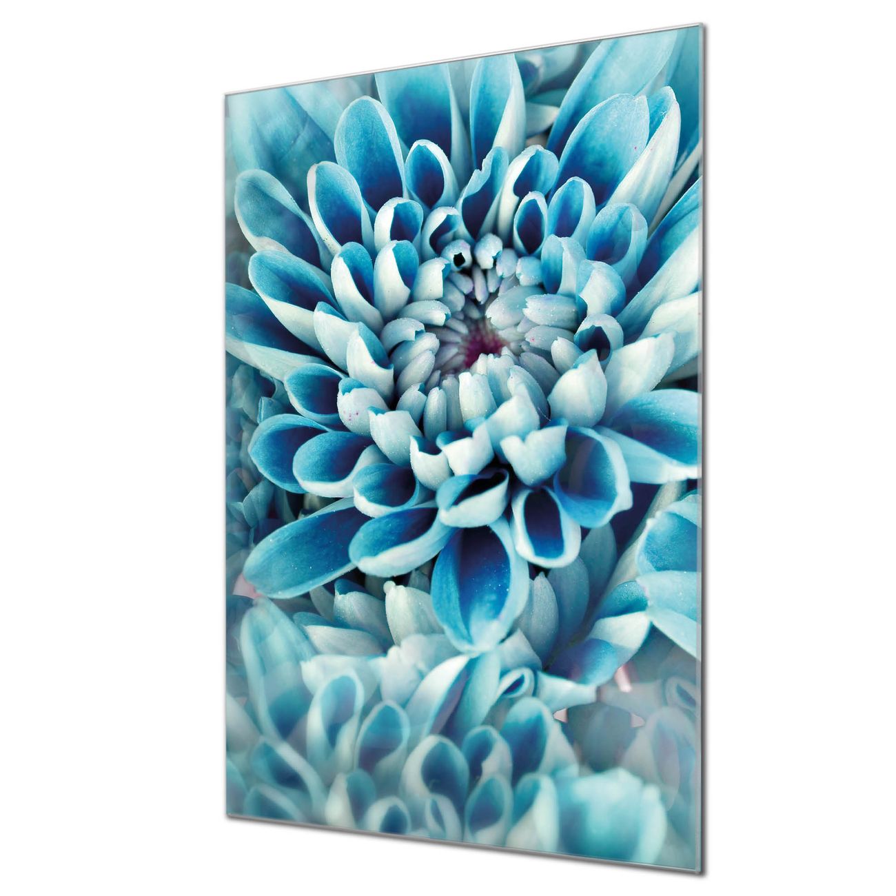 Brillantes Glasbild im Hochformat Blaue Blüten