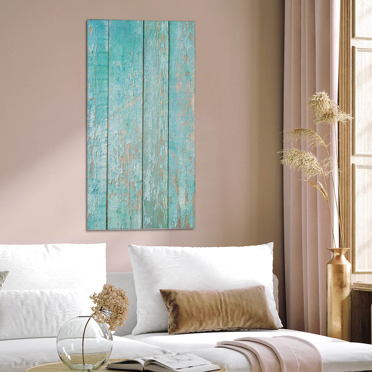 Brillantes Glasbild im Hochformat Blaue Planken