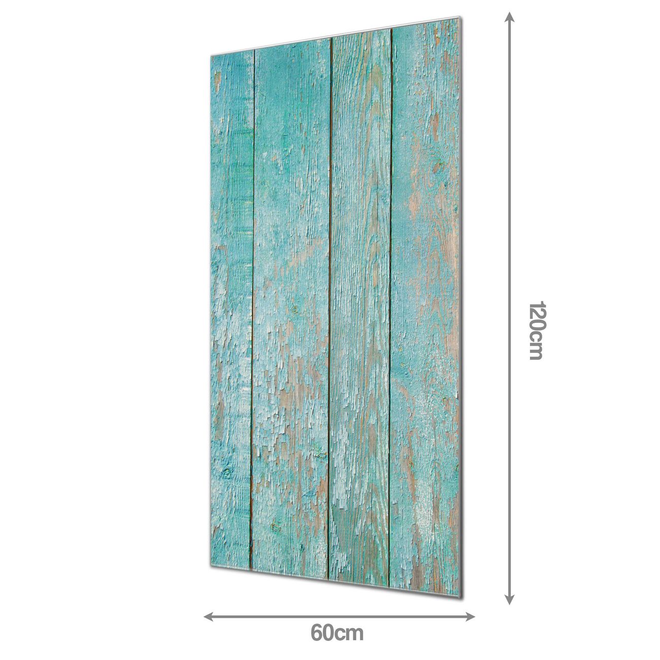 Material  4mm Sicherheitsglas mit Metallrückwand Eigenschaften  farbbrillant, kratzfest, rahmenlos Maße  60x120x0,6cm, 10,80 kg schwer Motiv  Nummer 11395 Blaue Planken