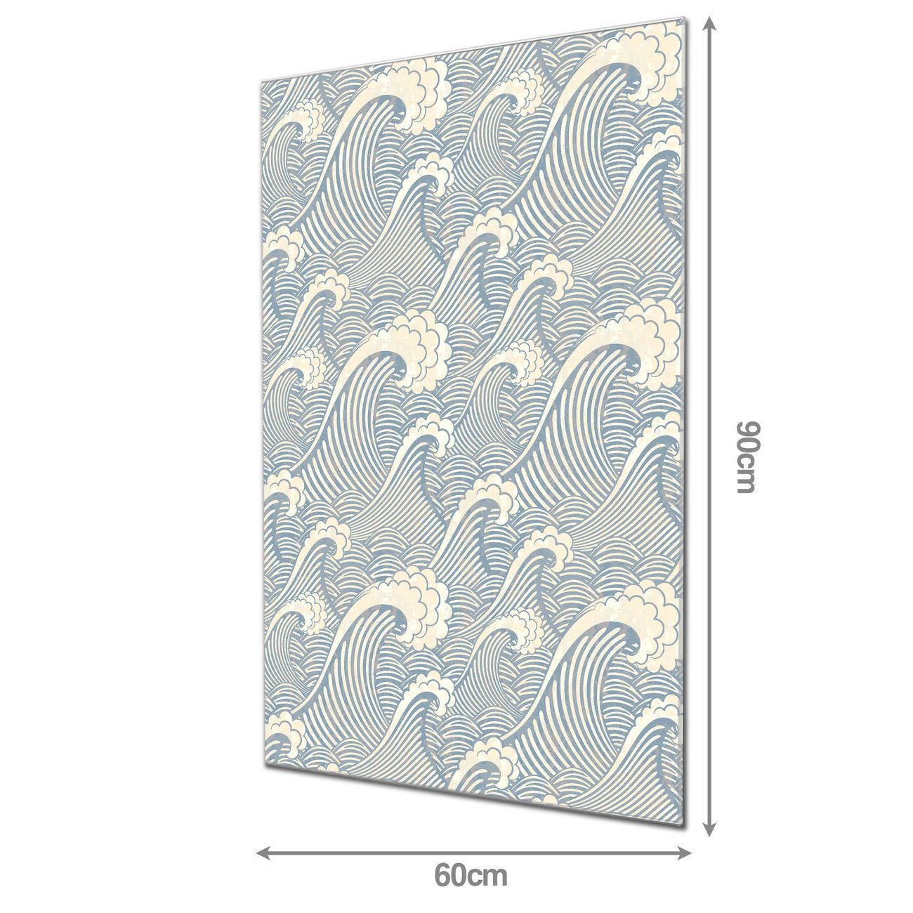 Material  4mm Sicherheitsglas mit Metallrückwand Eigenschaften  farbbrillant, kratzfest, rahmenlos Maße  60x90x0,6cm, 8,10 kg schwer Motiv  Nummer 11511 Blaue Wellen