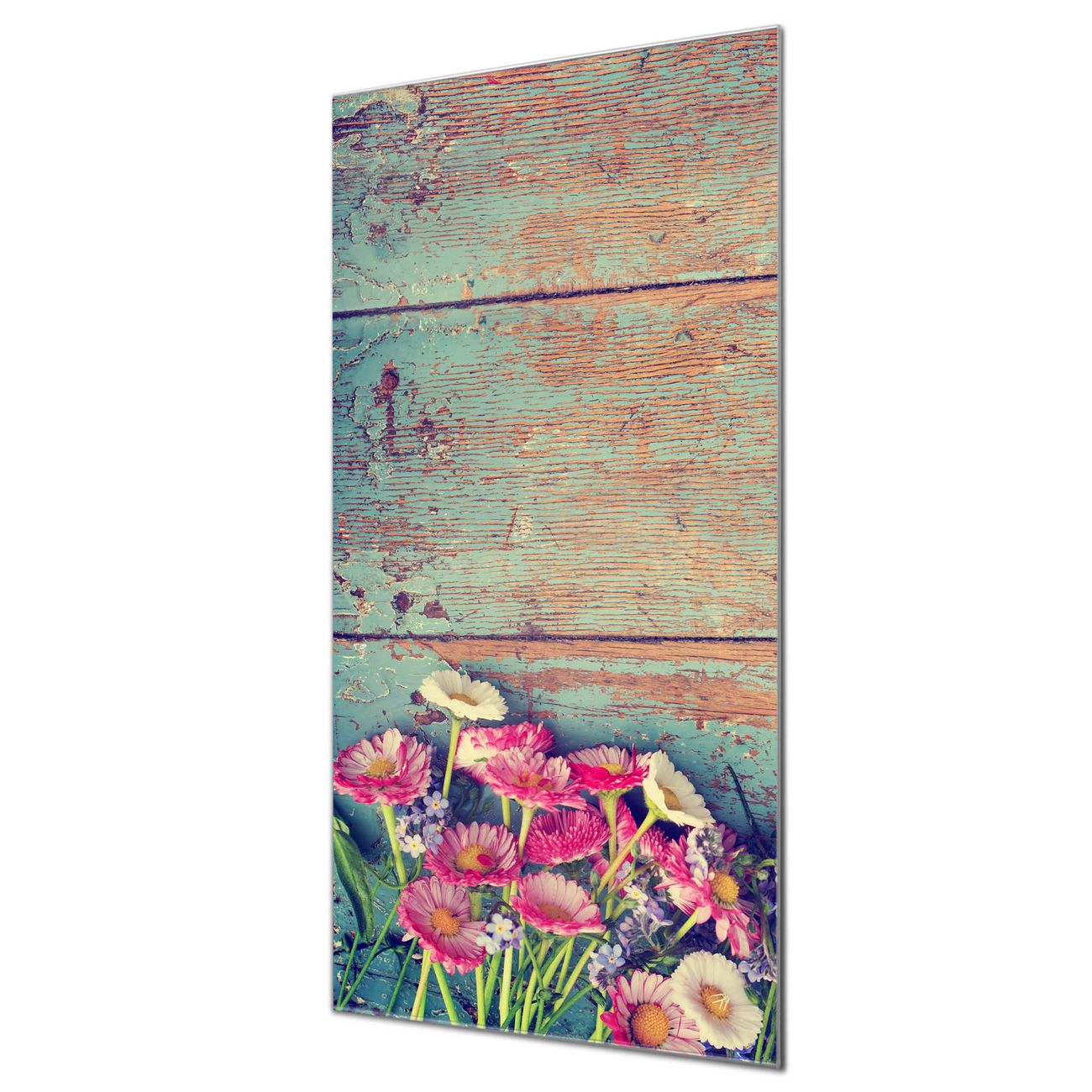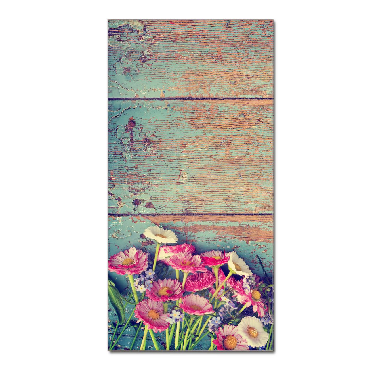Material  4mm Sicherheitsglas mit Metallrückwand Eigenschaften  farbbrillant, kratzfest, rahmenlos Maße  50x100x0,6cm, 7,50 kg schwer Motiv  Nummer 11210 Blumenpfücken