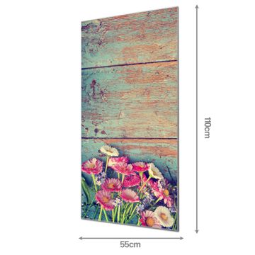 Brillantes Glasbild im Hochformat Blumenpfücken
