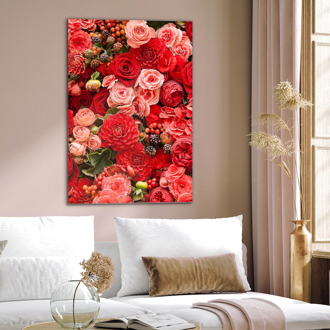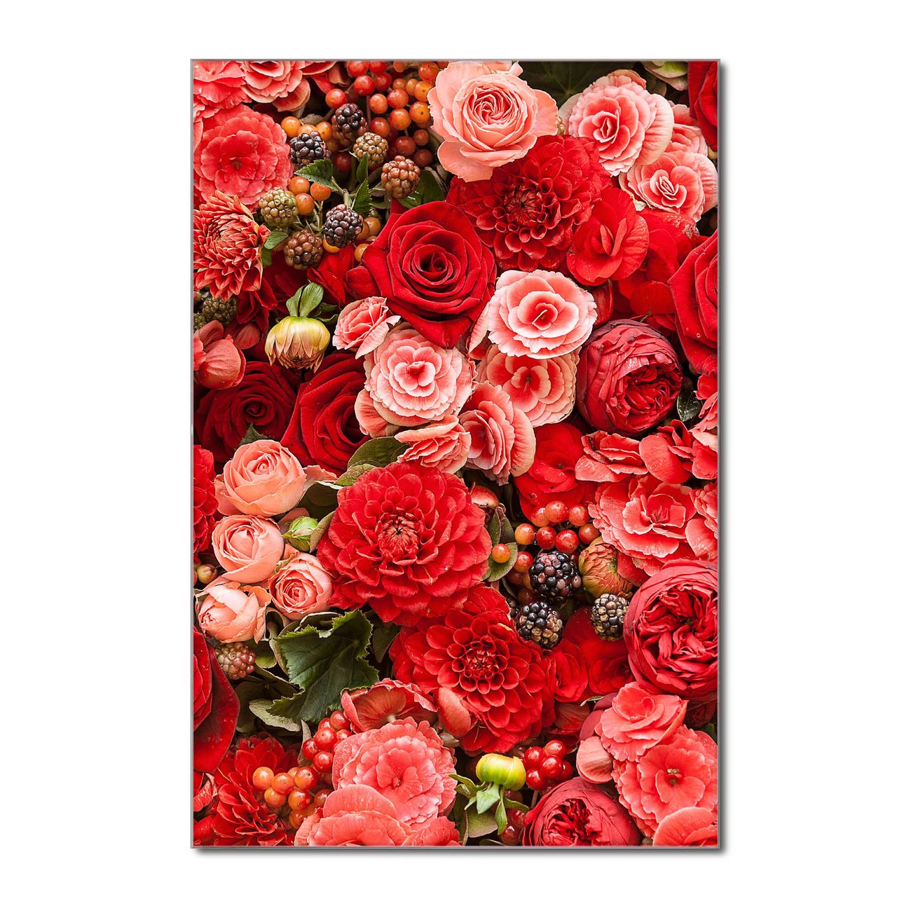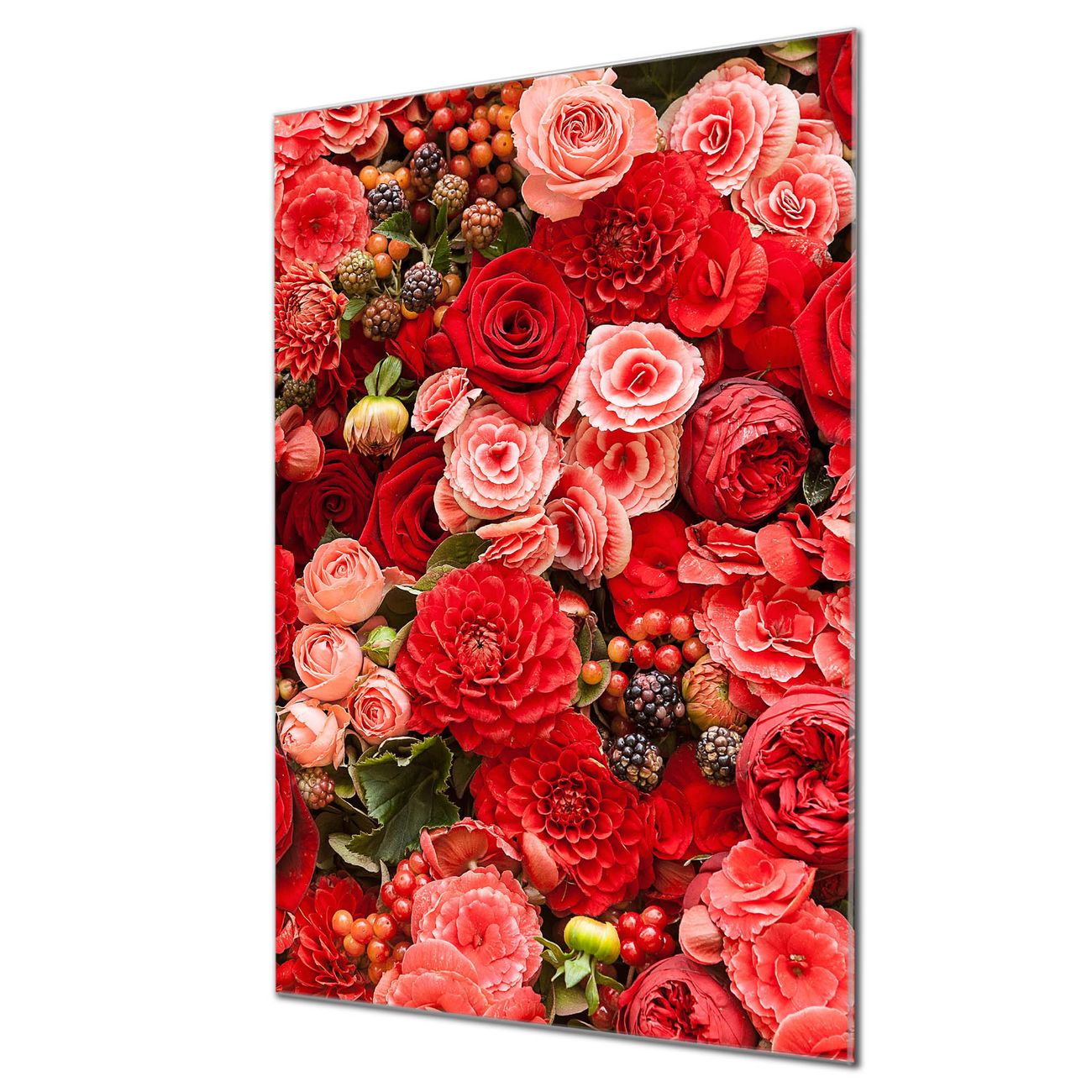 Brillantes Glasbild im Hochformat Bouquet in Rot