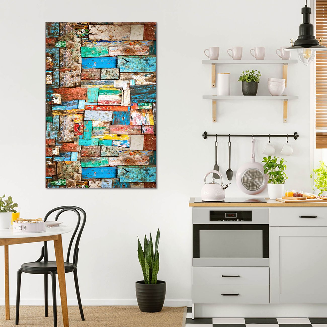 Unsere brillanten Glasbilder im Hochformat von banjado mit Motiv Bunte Holzschindeln sind der absolute Hingucker! Unsere Banjado Glasbilder sind sehr begehrt, weil sie top verarbeitet sind und sich ganz leicht montieren lassen. Schon mit wenigen Handgriffen hängen sie an der Wand und strahlen mit höchster brillianz. Durch die Ramenlose Herstellung schwebt das Echtglasbild förmlich an der Wand. Das Motiv erscheint besonders ausdrucksstark, hochwertig und ist hinter dem Echtglas geschützt.