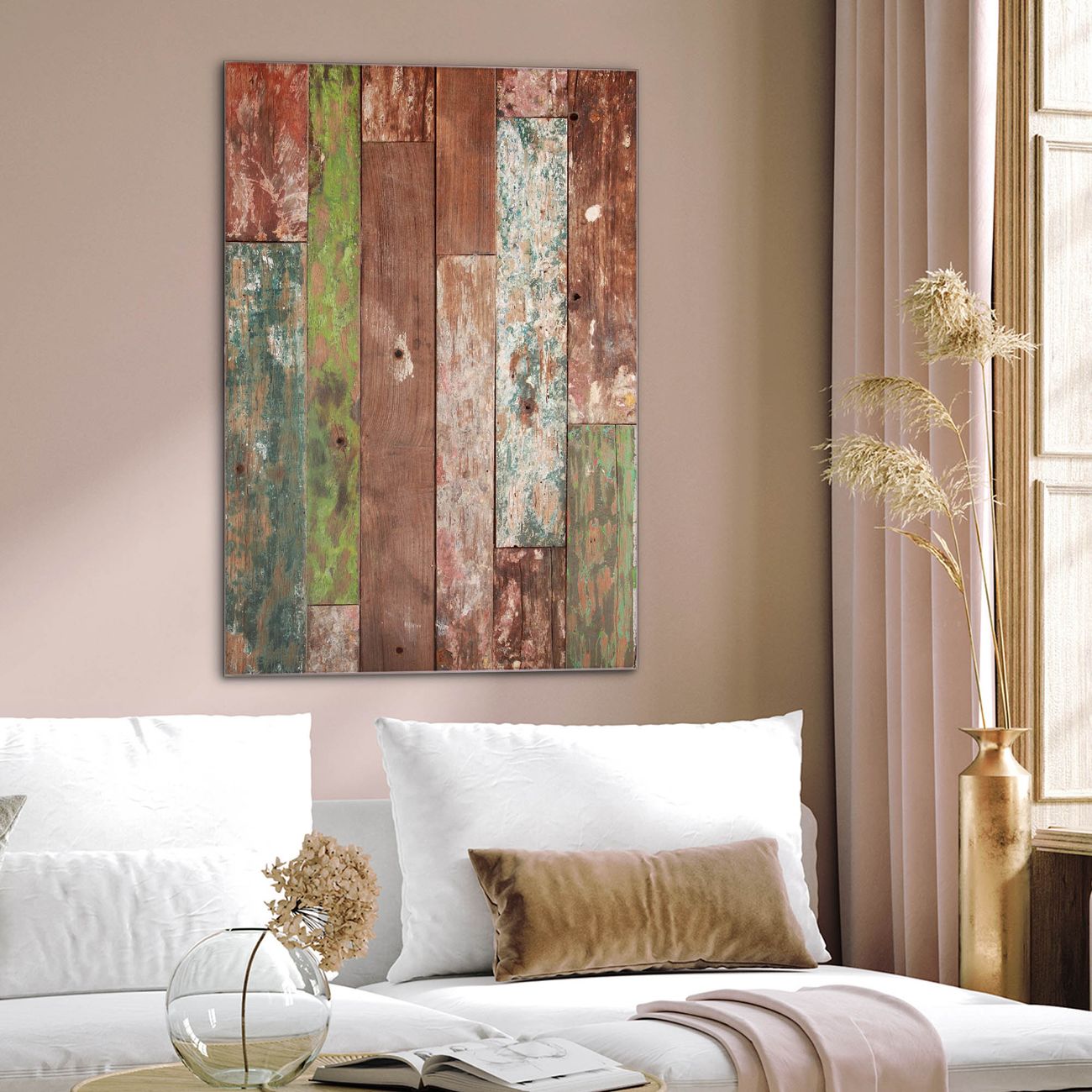 Brillantes Glasbild im Hochformat Buntes Holz