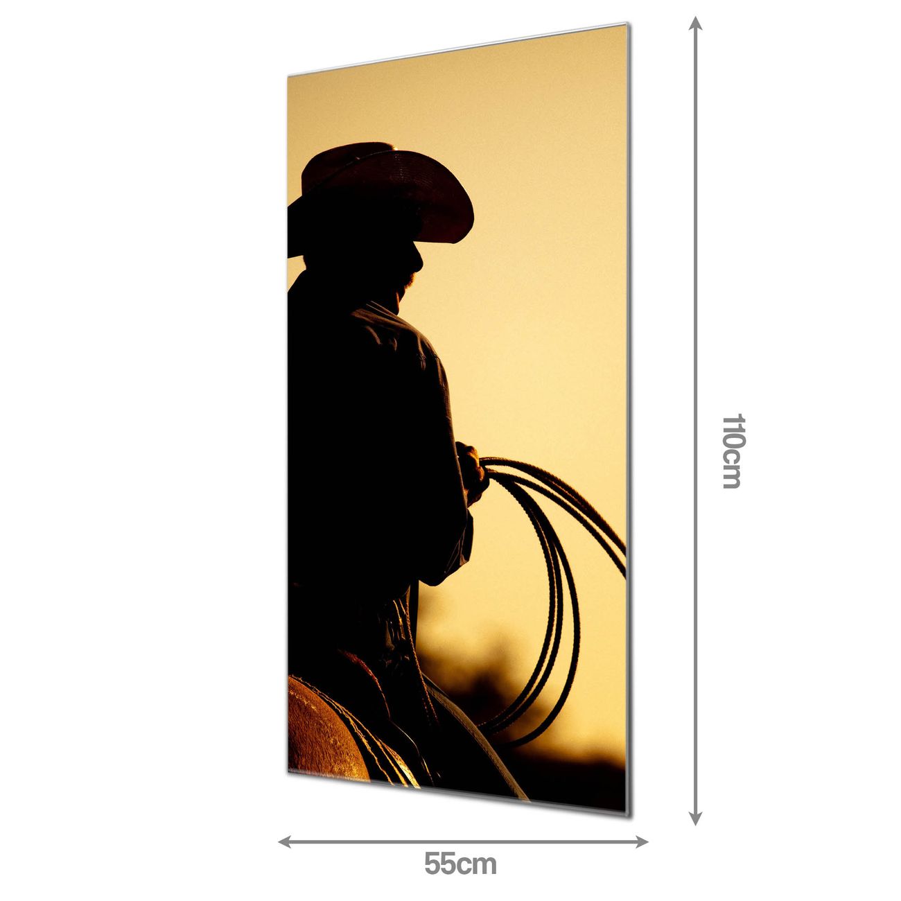 Unsere brillanten Glasbilder im Hochformat von banjado mit Motiv Cowboy sind der absolute Hingucker! Unsere Banjado Glasbilder sind sehr begehrt, weil sie top verarbeitet sind und sich ganz leicht montieren lassen. Schon mit wenigen Handgriffen hängen sie an der Wand und strahlen mit höchster brillianz. Durch die Ramenlose Herstellung schwebt das Echtglasbild förmlich an der Wand. Das Motiv erscheint besonders ausdrucksstark, hochwertig und ist hinter dem Echtglas geschützt.