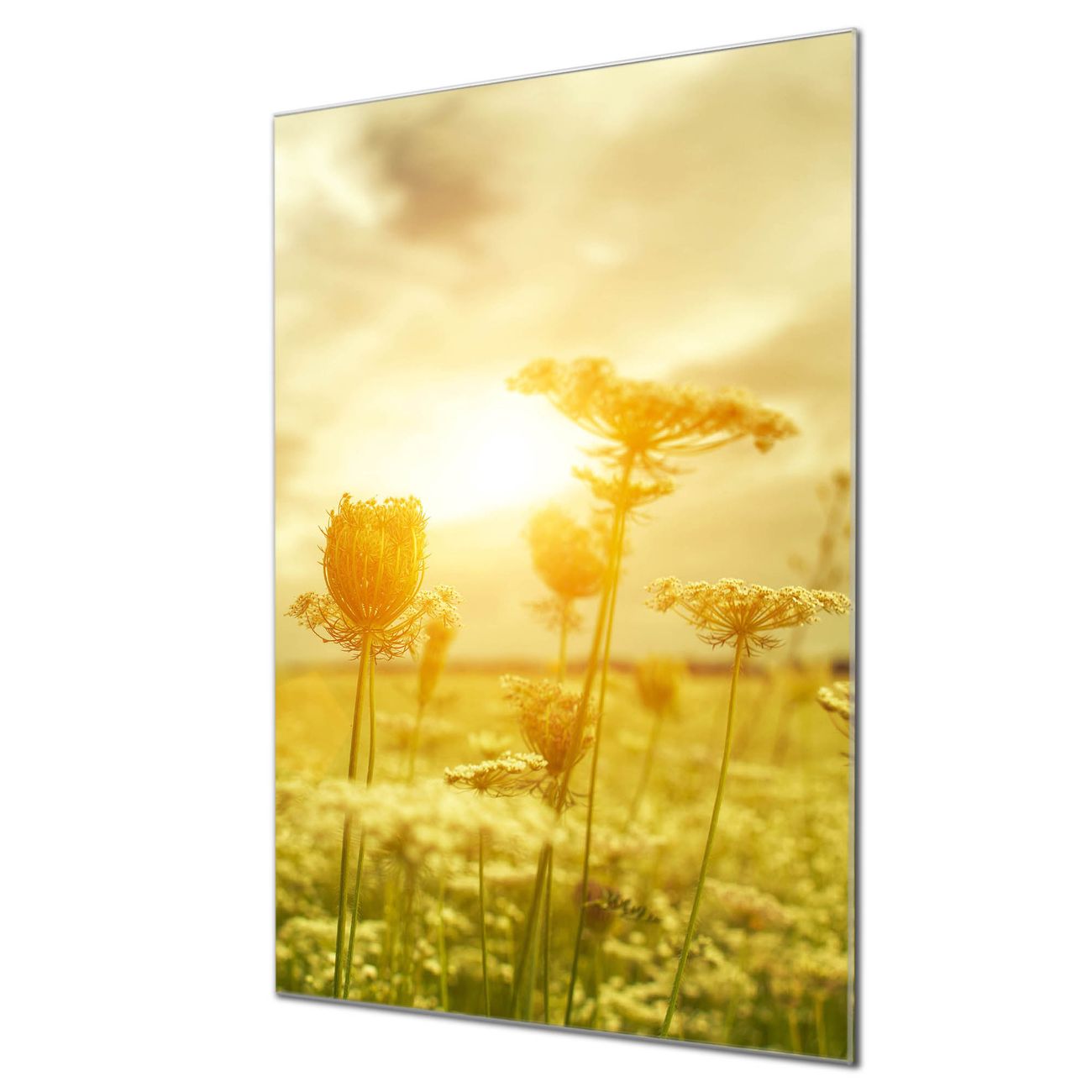 Brillantes Glasbild im Hochformat Dill im Sonnenlicht
