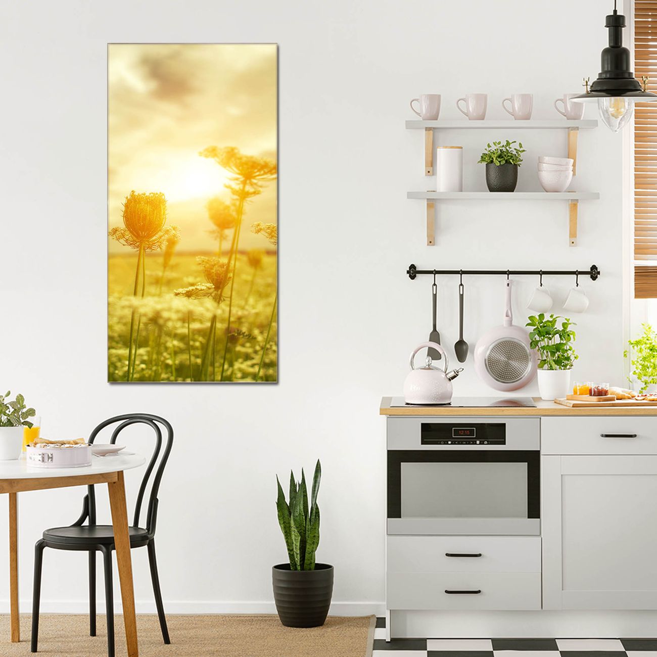 Brillantes Glasbild im Hochformat Dill im Sonnenlicht