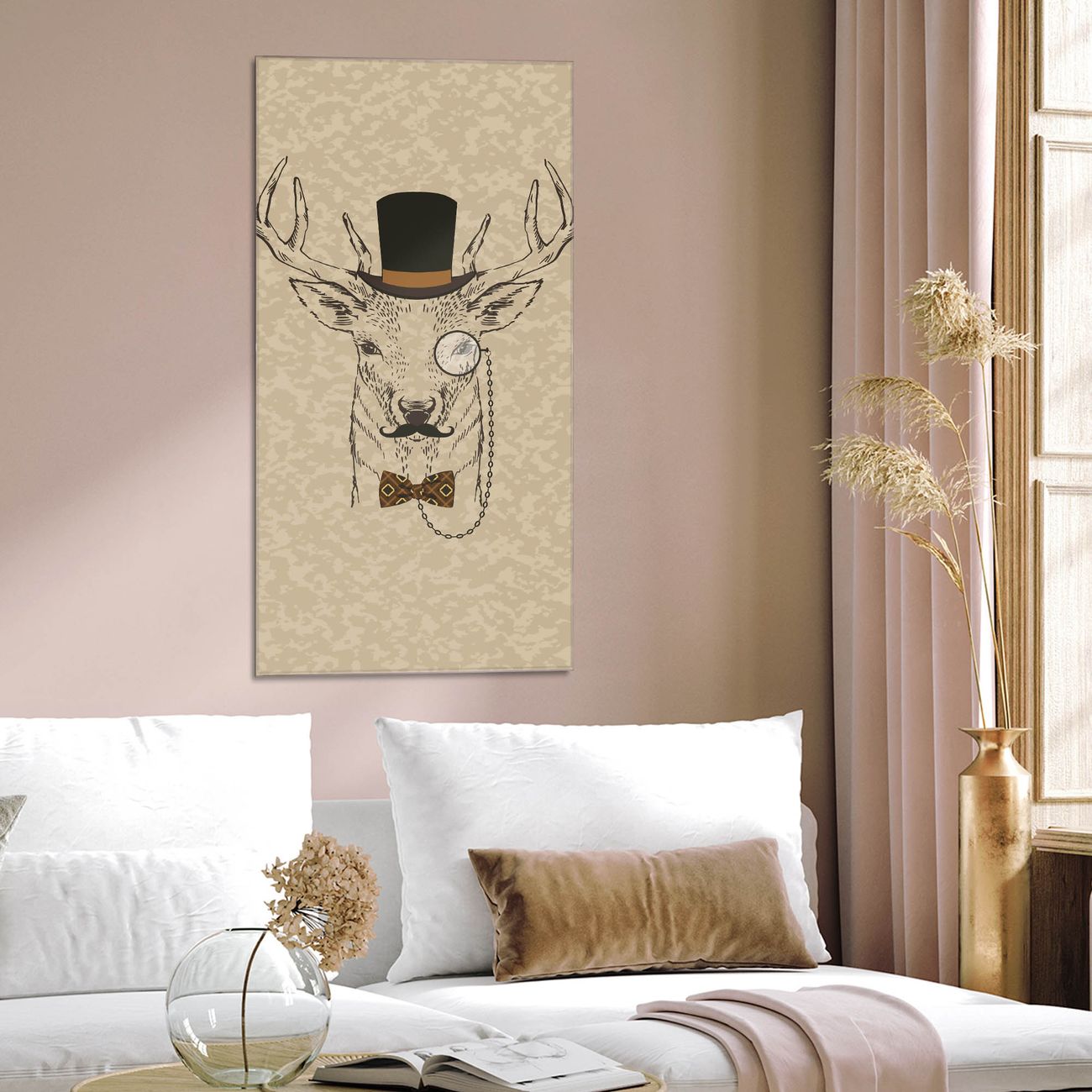 Unsere brillanten Glasbilder im Hochformat von banjado mit Motiv Direktor Hirsch sind der absolute Hingucker! Unsere Banjado Glasbilder sind sehr begehrt, weil sie top verarbeitet sind und sich ganz leicht montieren lassen. Schon mit wenigen Handgriffen hängen sie an der Wand und strahlen mit höchster brillianz. Durch die Ramenlose Herstellung schwebt das Echtglasbild förmlich an der Wand. Das Motiv erscheint besonders ausdrucksstark, hochwertig und ist hinter dem Echtglas geschützt.