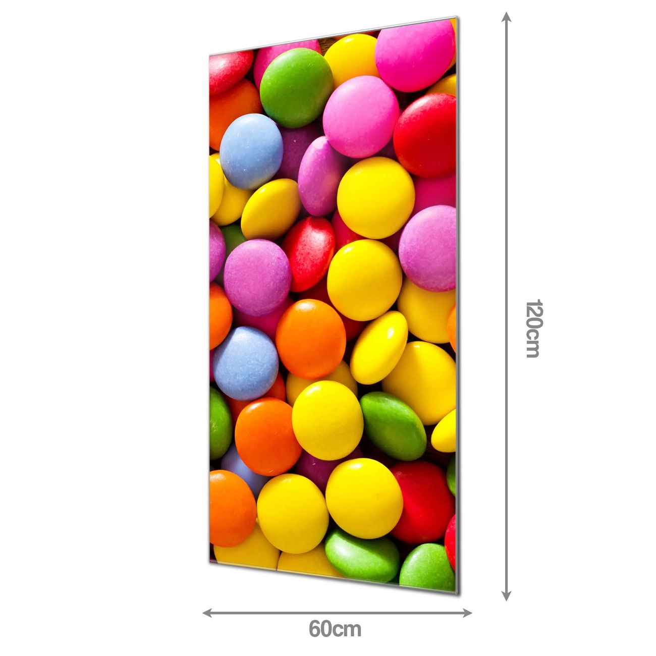 Material  4mm Sicherheitsglas mit Metallrückwand Eigenschaften  farbbrillant, kratzfest, rahmenlos Maße  60x120x0,6cm, 10,80 kg schwer Motiv  Nummer 12075 Dragees