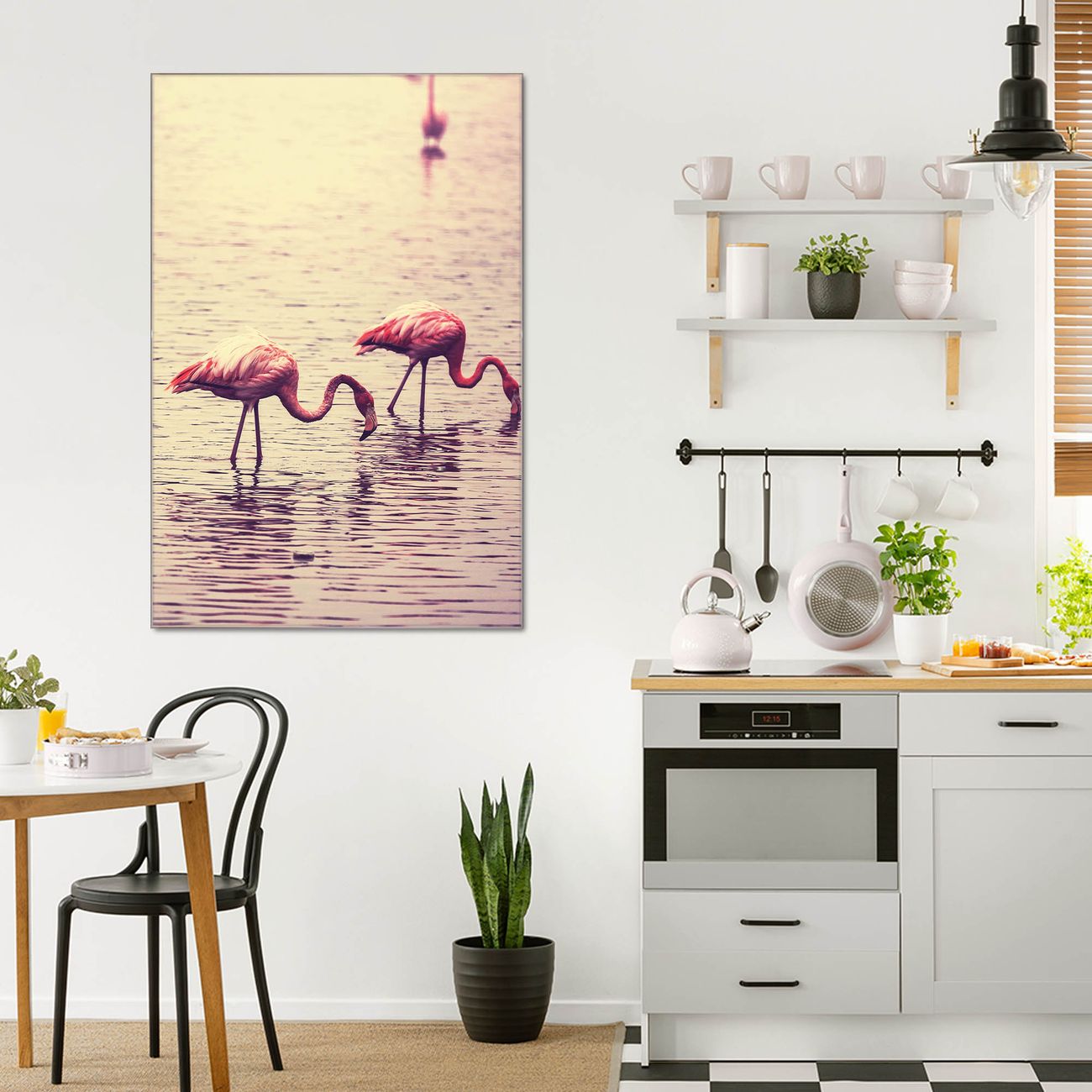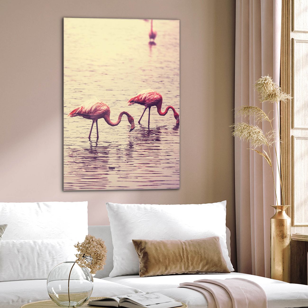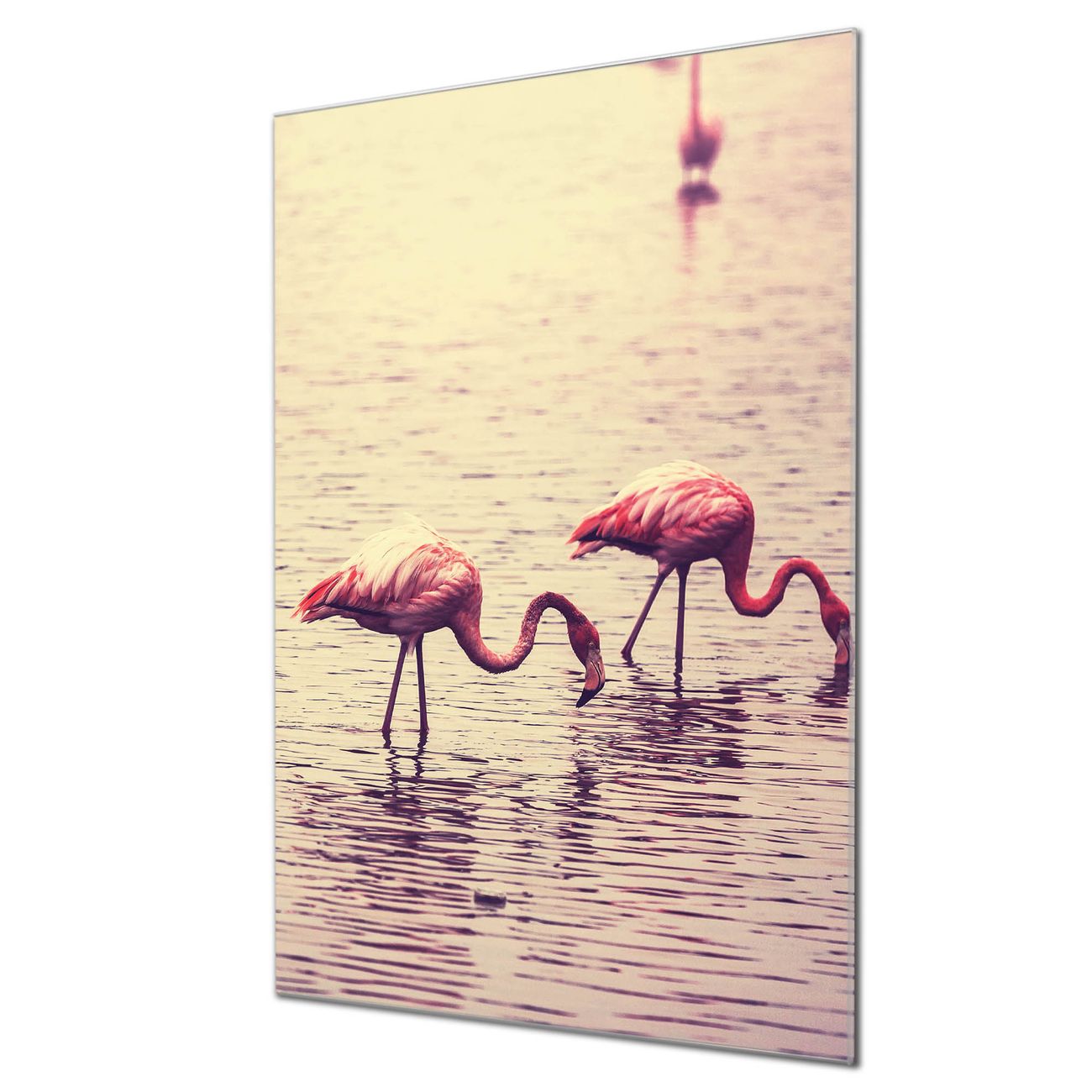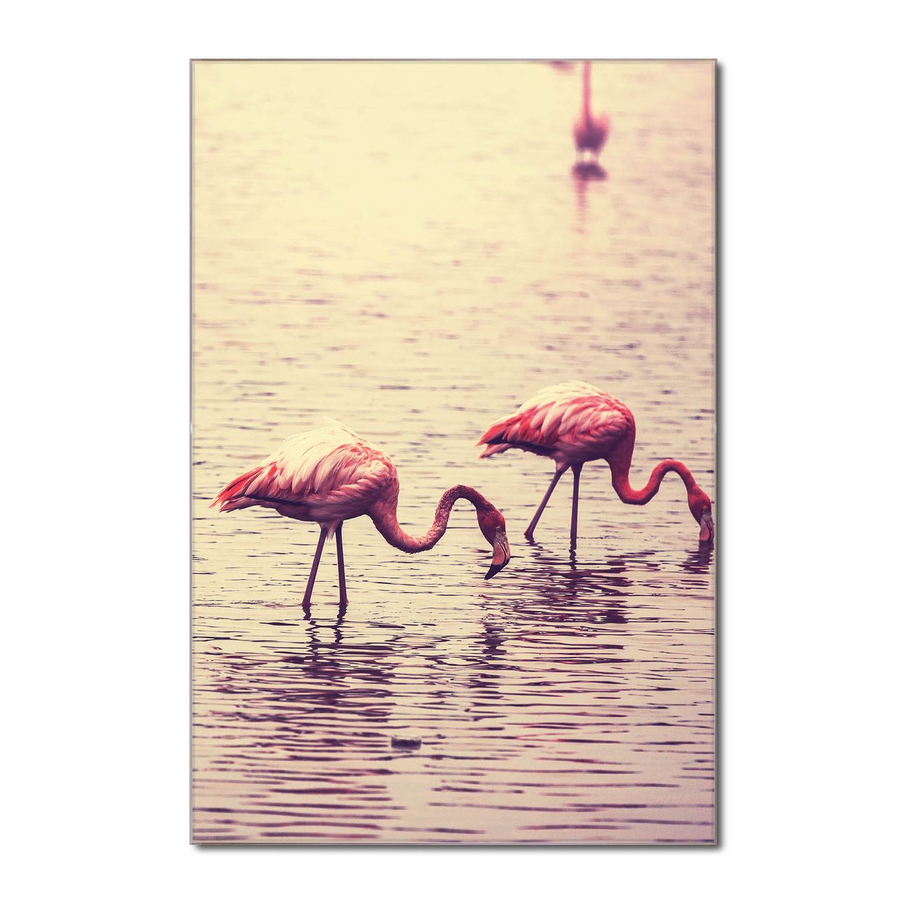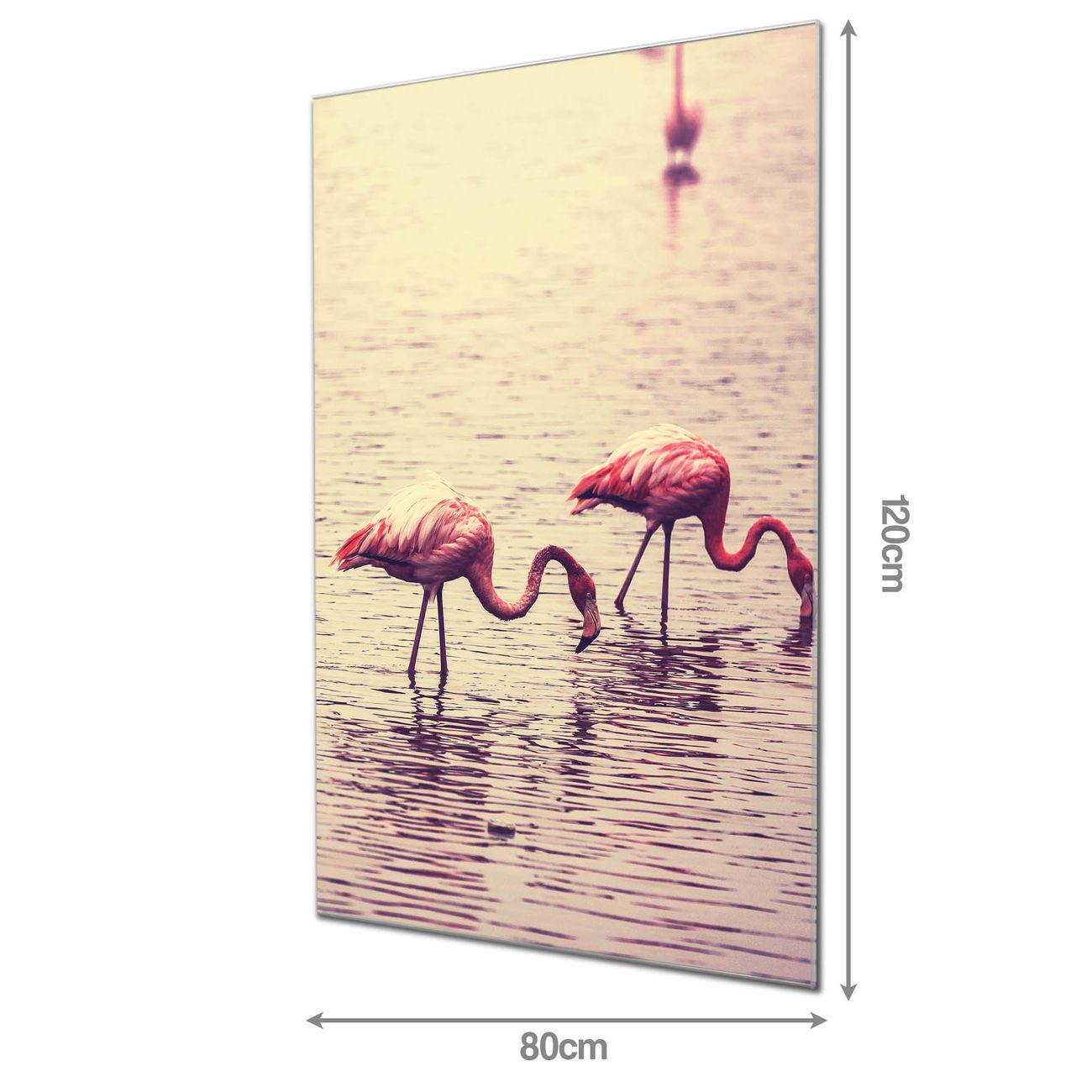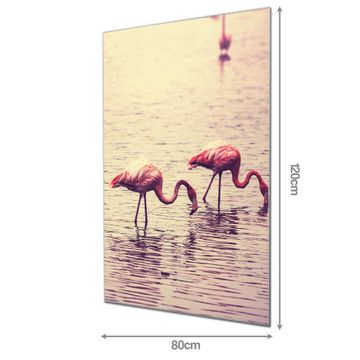 Material  4mm Sicherheitsglas mit Metallrückwand Eigenschaften  farbbrillant, kratzfest, rahmenlos Maße  80x120x0,6cm, 14,40 kg schwer Motiv  Nummer 11734 Drei Flamnigos