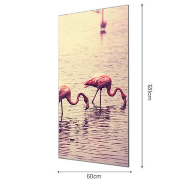 Material  4mm Sicherheitsglas mit Metallrückwand Eigenschaften  farbbrillant, kratzfest, rahmenlos Maße  60x120x0,6cm, 10,80 kg schwer Motiv  Nummer 11734 Drei Flamnigos
