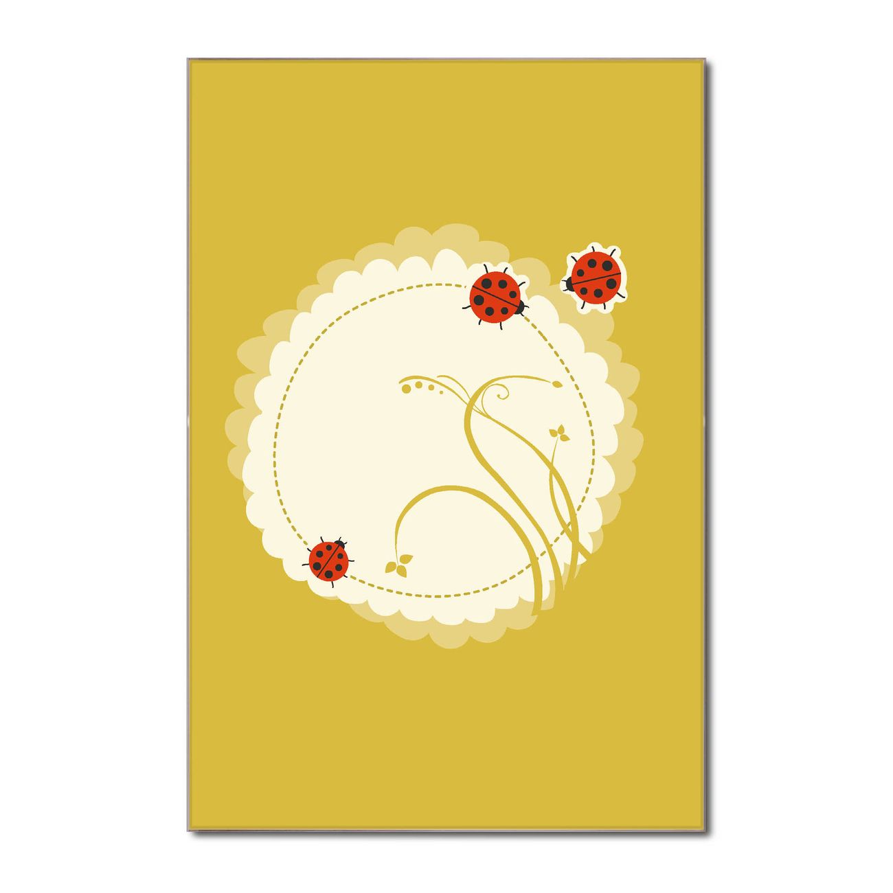 Brillantes Glasbild im Hochformat Drei Marienkäfer