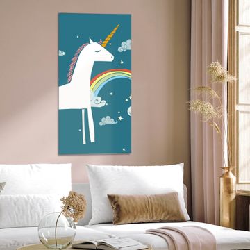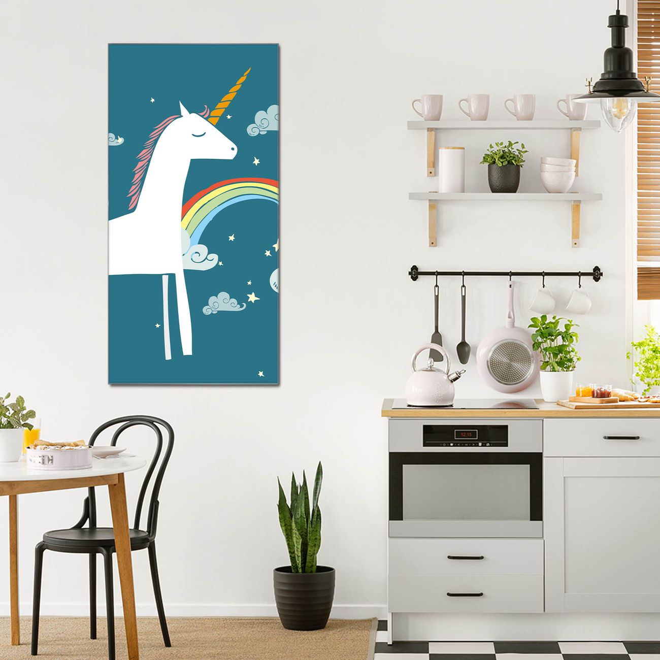 Unsere brillanten Glasbilder im Hochformat von banjado mit Motiv Einhorn sind der absolute Hingucker! Unsere Banjado Glasbilder sind sehr begehrt, weil sie top verarbeitet sind und sich ganz leicht montieren lassen. Schon mit wenigen Handgriffen hängen sie an der Wand und strahlen mit höchster brillianz. Durch die Ramenlose Herstellung schwebt das Echtglasbild förmlich an der Wand. Das Motiv erscheint besonders ausdrucksstark und hochwertig und ist hinter dem Echtglas geschützt.