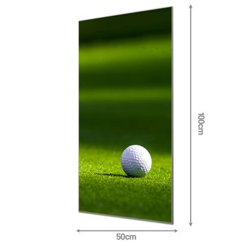 Brillantes Glasbild im Hochformat Einsamer Golfball