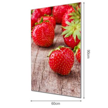 Material  4mm Sicherheitsglas mit Metallrückwand Eigenschaften  farbbrillant, kratzfest, rahmenlos Maße  60x90x0,6cm, 8,10 kg schwer Motiv  Nummer 11815 Erdbeeren
