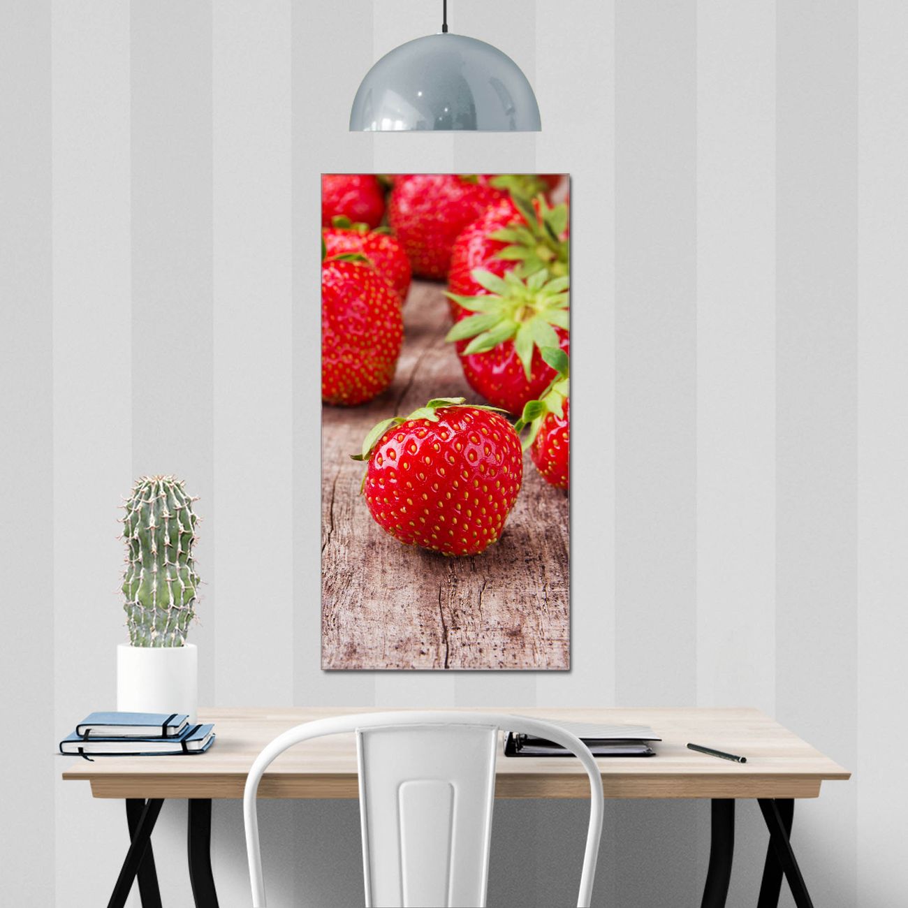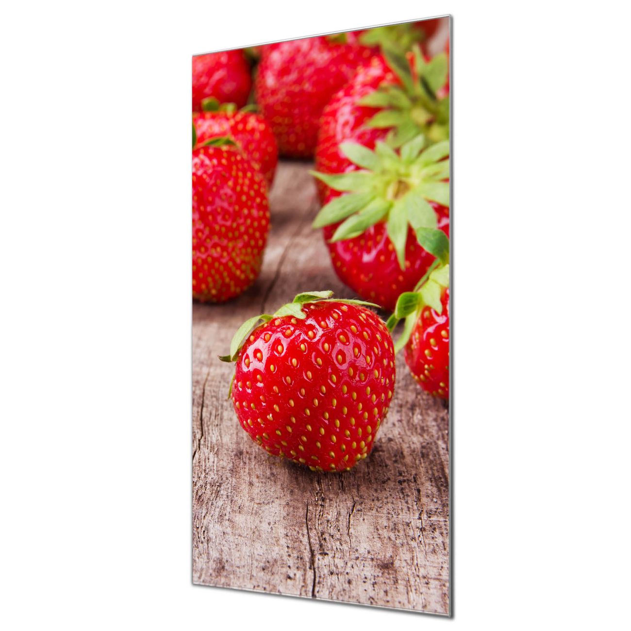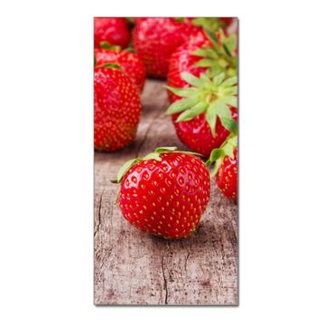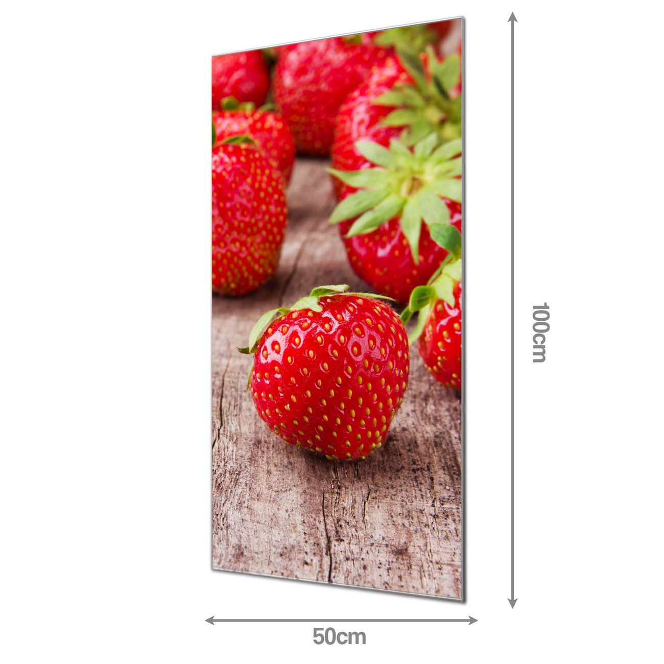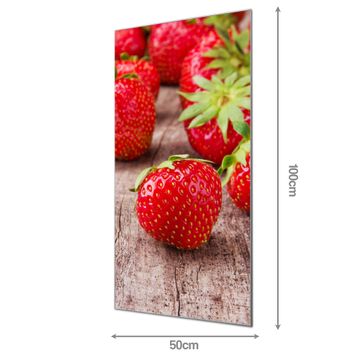 Material  4mm Sicherheitsglas mit Metallrückwand Eigenschaften  farbbrillant, kratzfest, rahmenlos Maße  50x100x0,6cm, 7,50 kg schwer Motiv  Nummer 11815 Erdbeeren