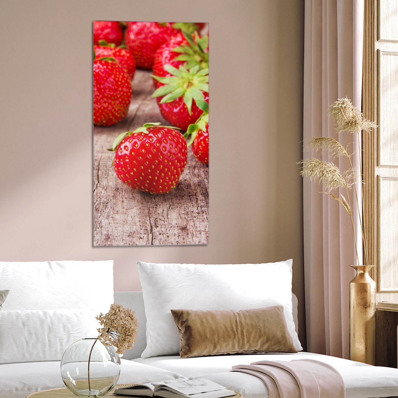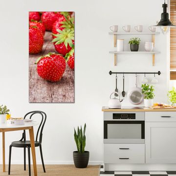 Brillantes Glasbild im Hochformat Erdbeeren