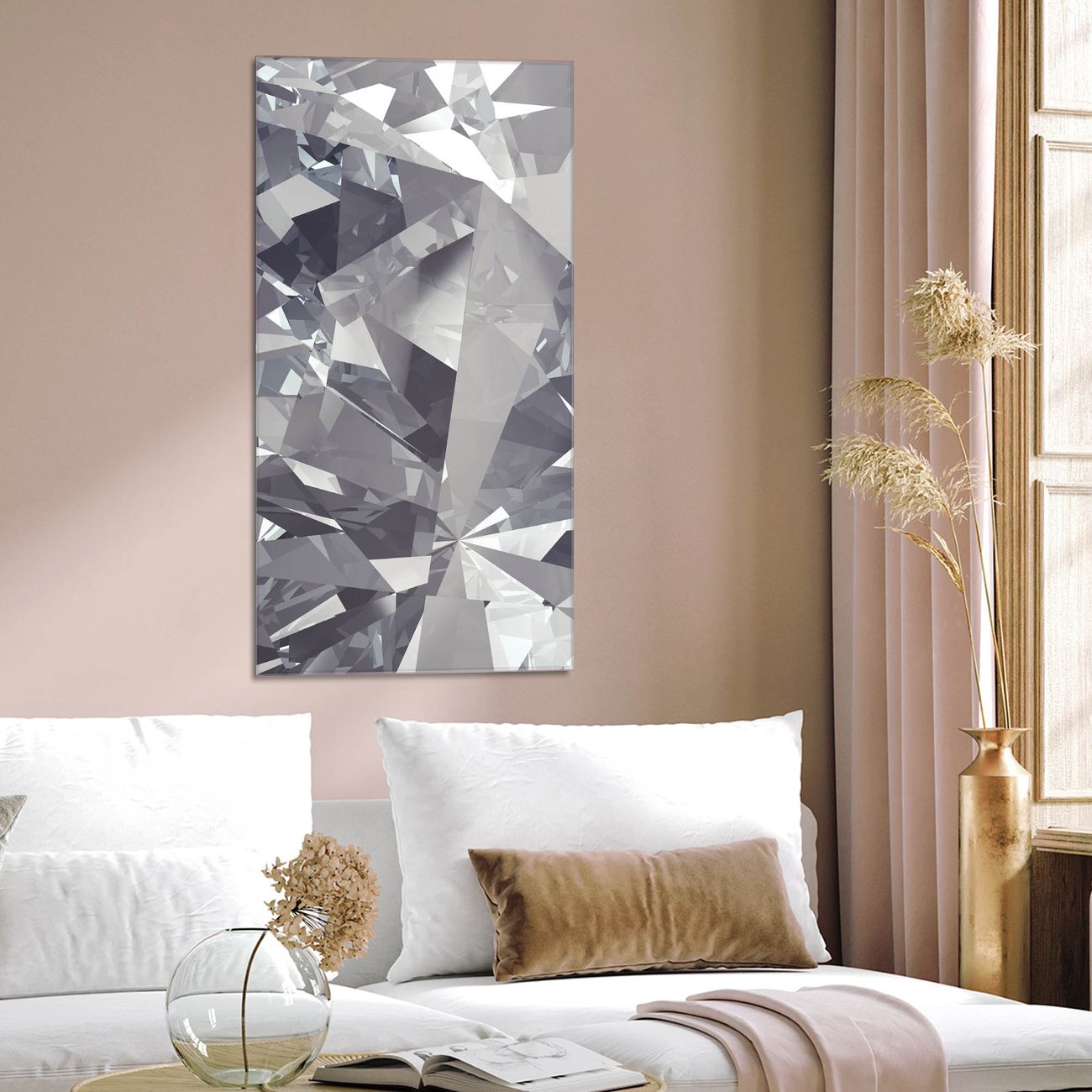 Brillantes Glasbild im Hochformat Facetten Monochrome