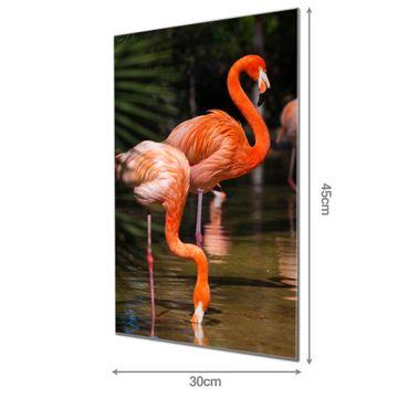 Brillantes Glasbild im Hochformat Flamingo