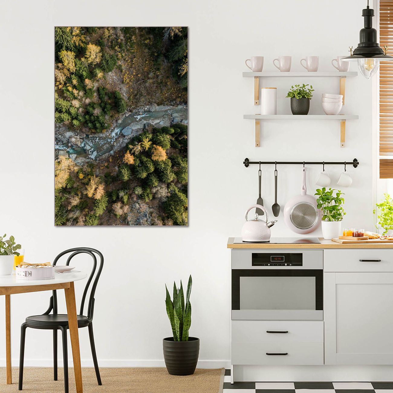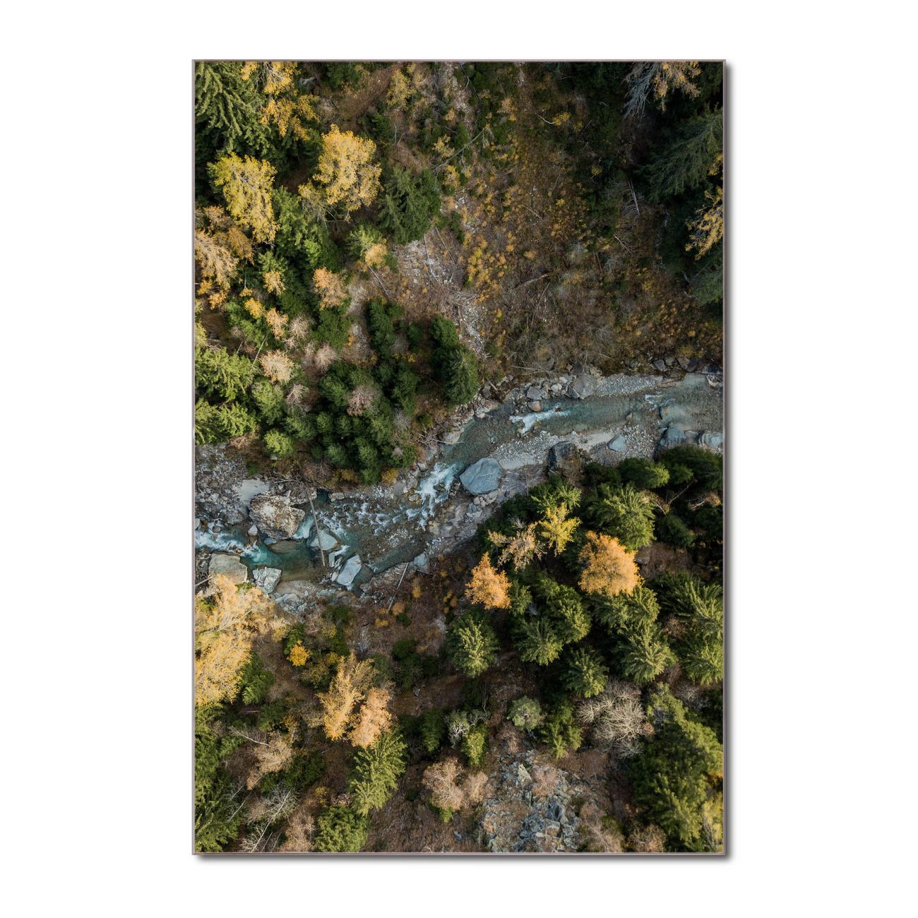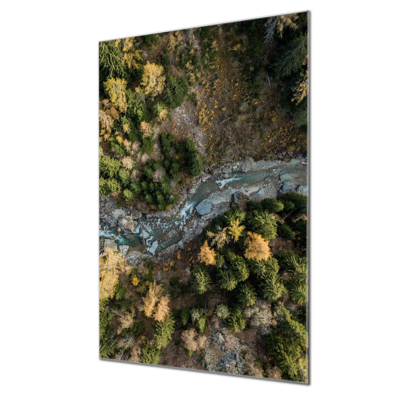 Brillantes Glasbild im Hochformat Fluss im Tal 2