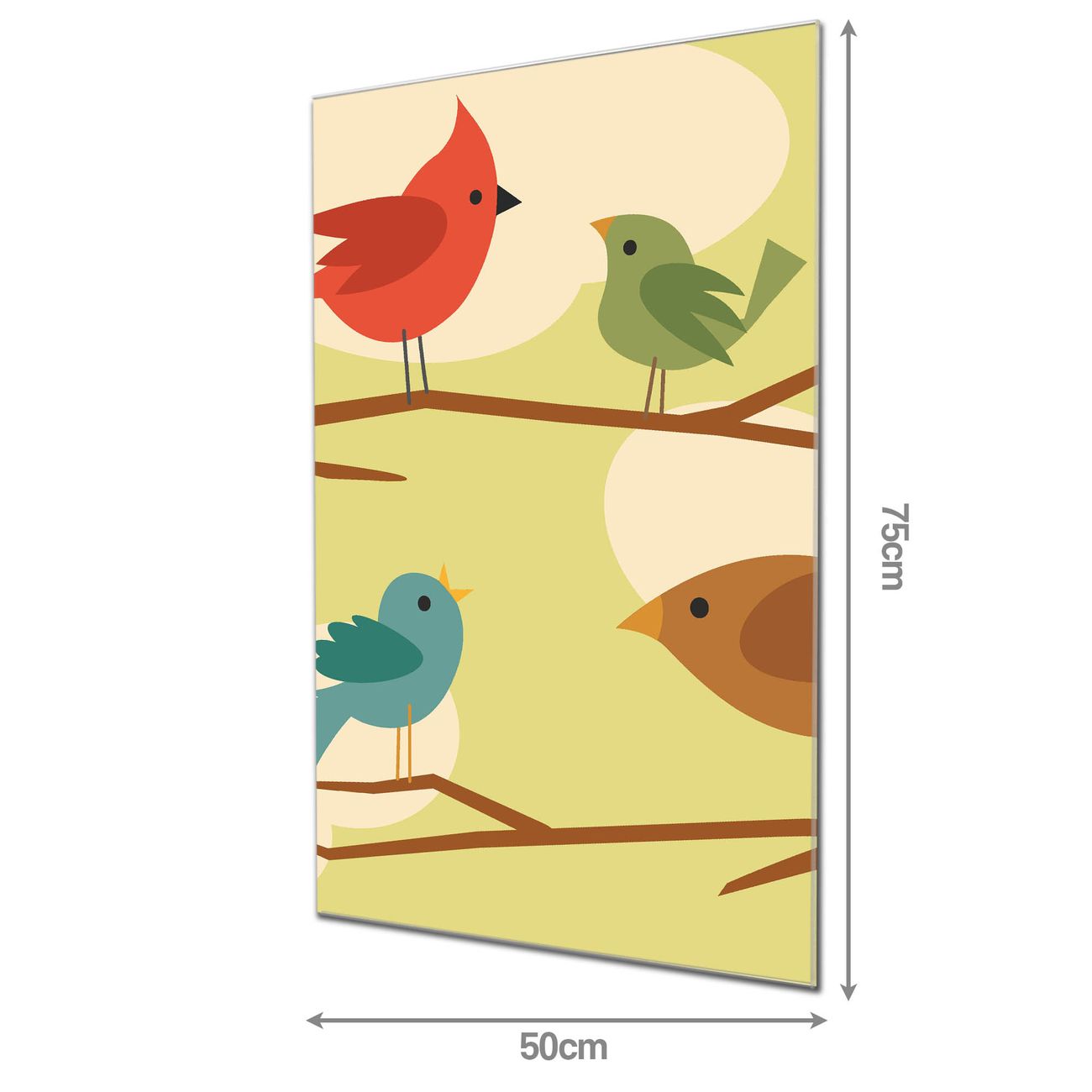 Brillantes Glasbild im Hochformat Fünf Vögel