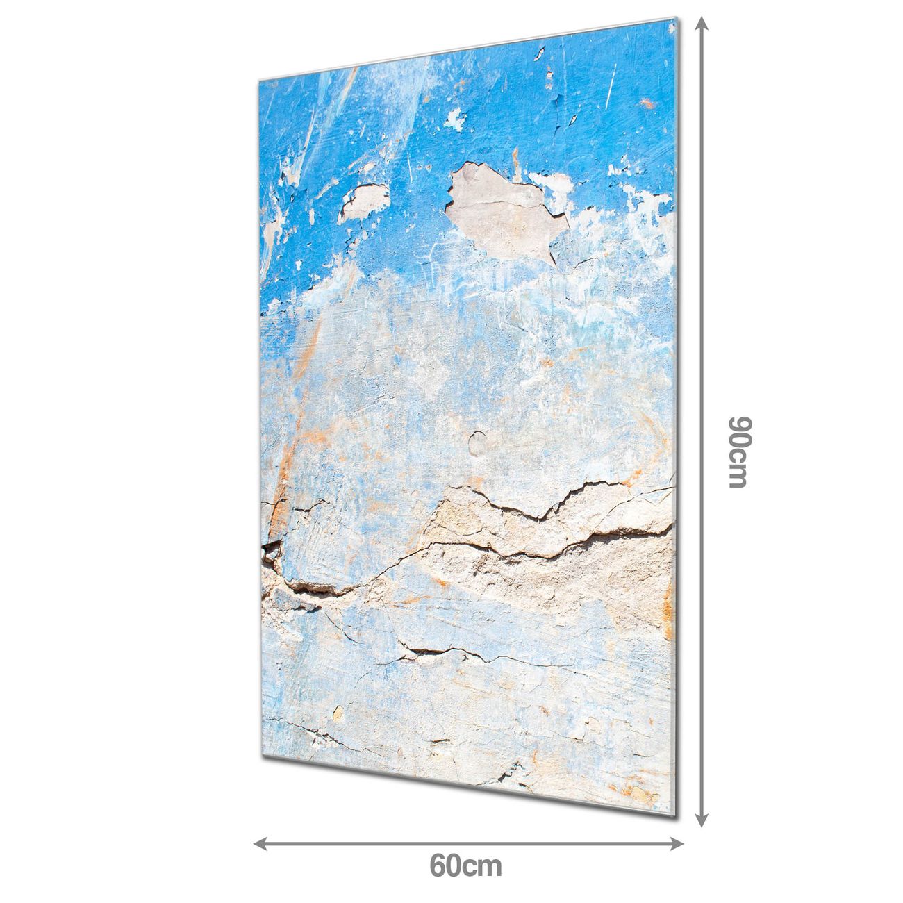 Material  4mm Sicherheitsglas mit Metallrückwand Eigenschaften  farbbrillant, kratzfest, rahmenlos Maße  60x90x0,6cm, 8,10 kg schwer Motiv  Nummer 11761 Gebrochene Wand