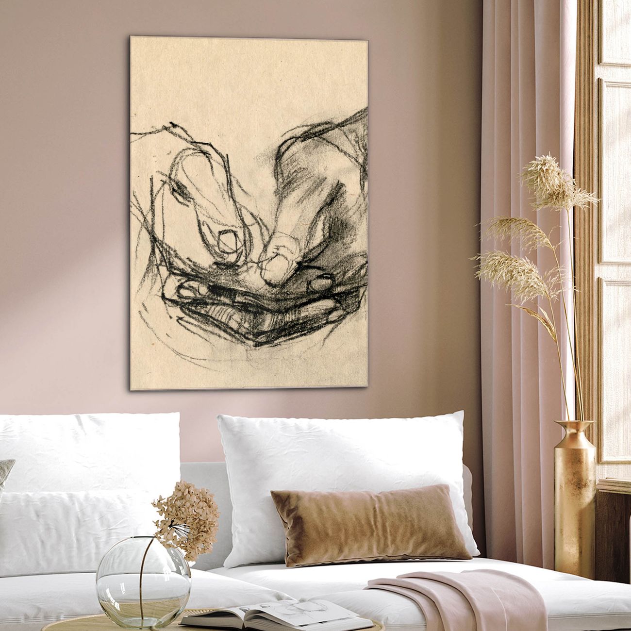 Brillantes Glasbild im Hochformat Gefaltete Hände