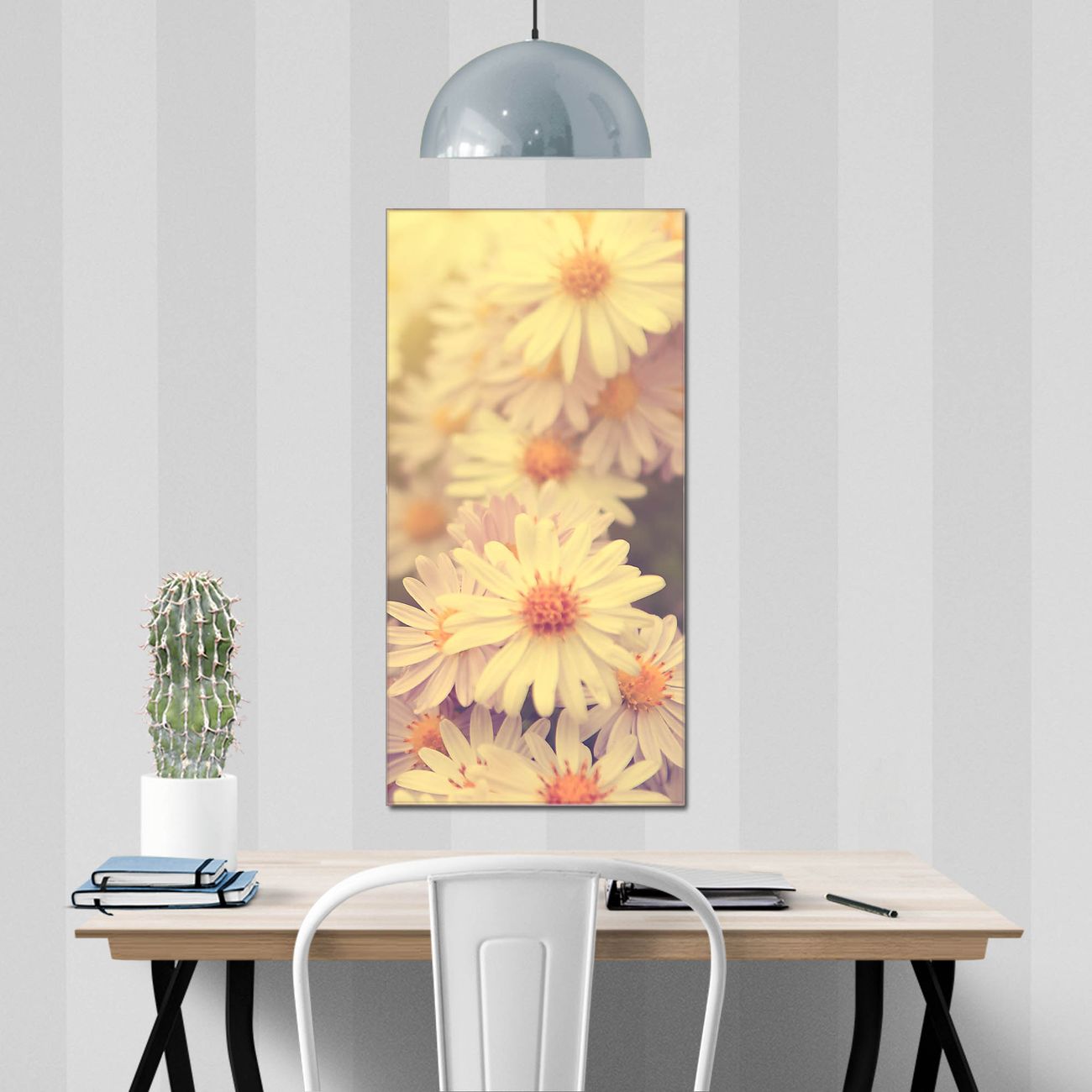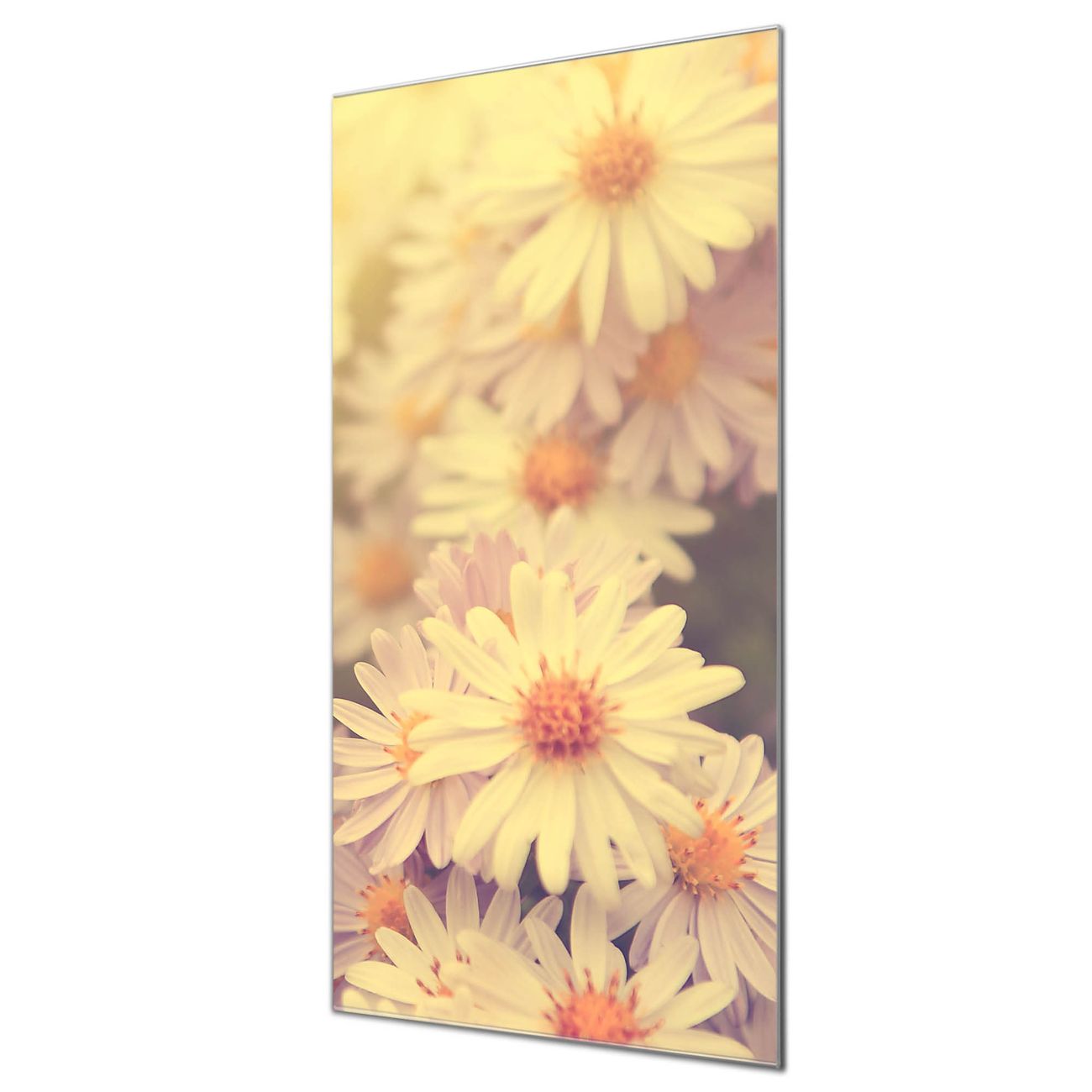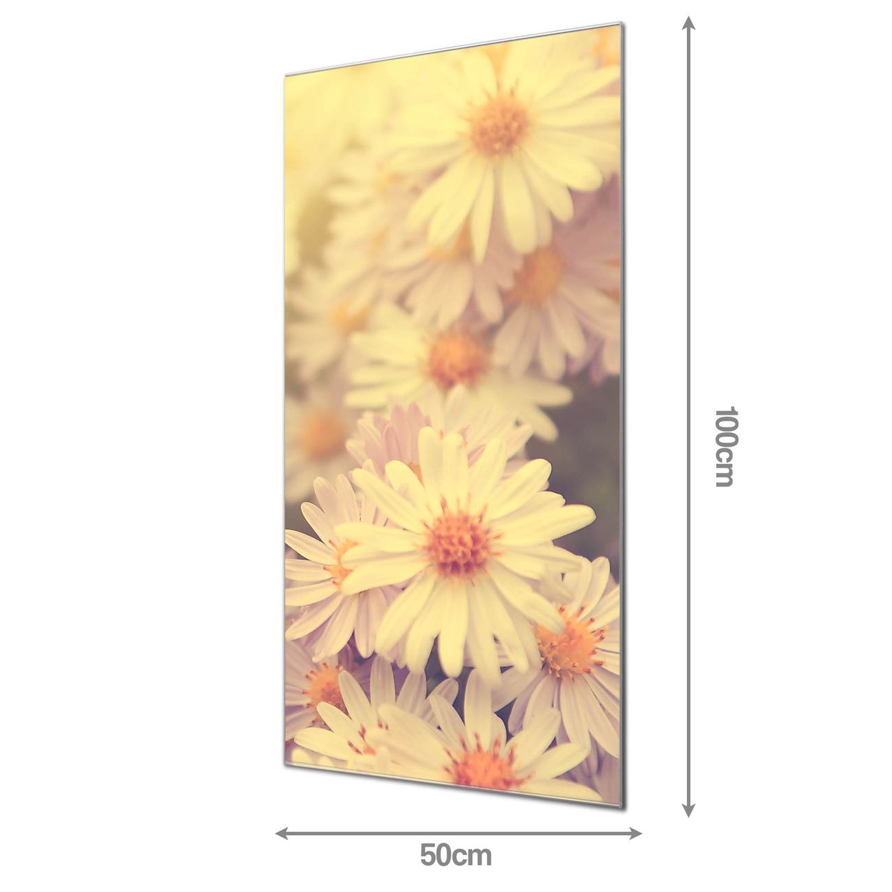 Material  4mm Sicherheitsglas mit Metallrückwand Eigenschaften  farbbrillant, kratzfest, rahmenlos Maße  50x100x0,6cm, 7,50 kg schwer Motiv  Nummer 12047 Gerbera 3