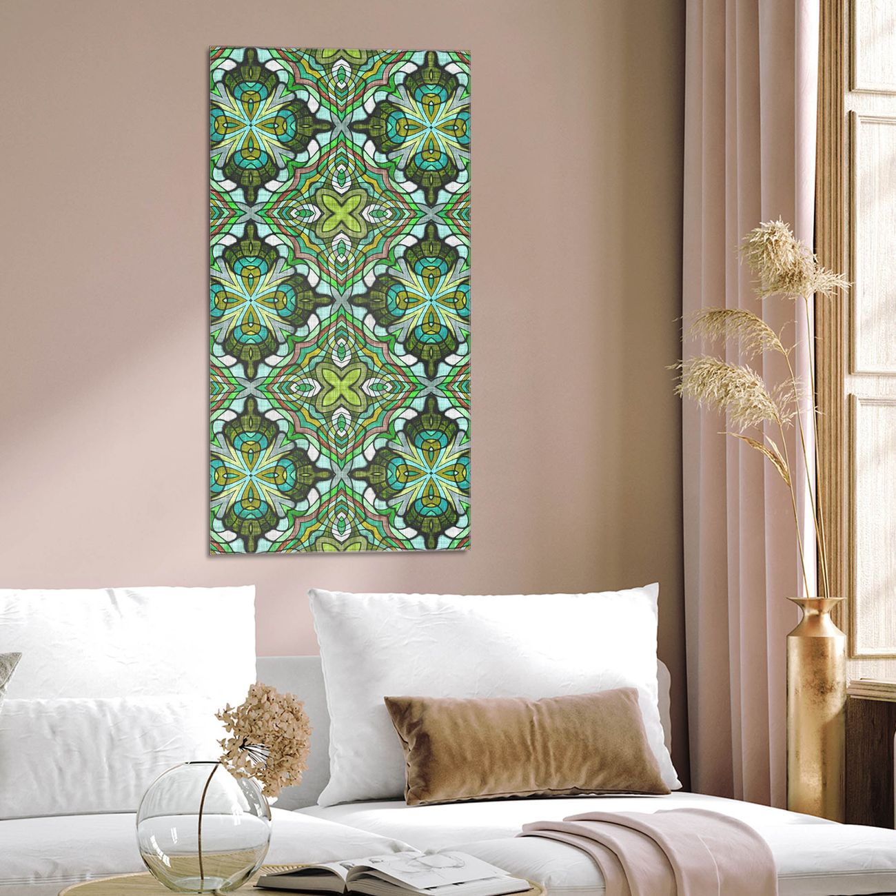 Brillantes Glasbild im Hochformat
