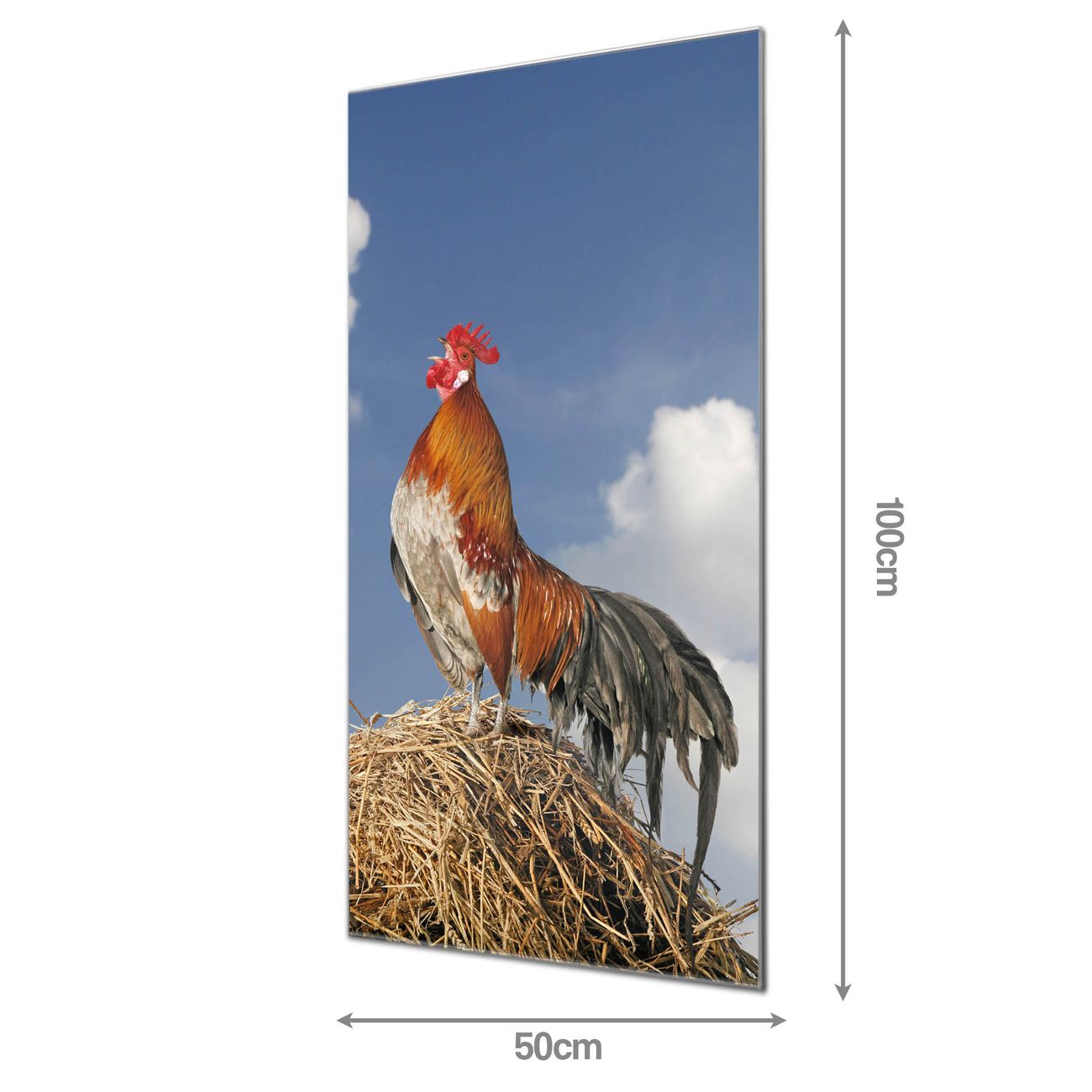 Brillantes Glasbild im Hochformat Hahn