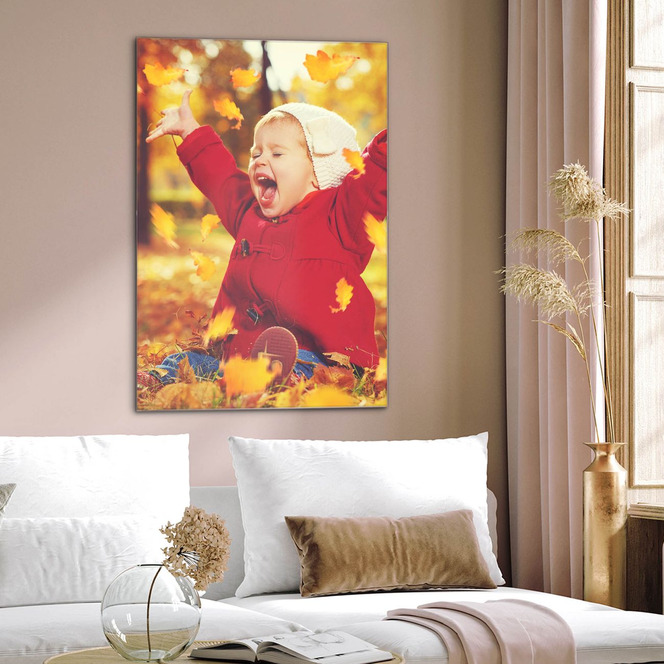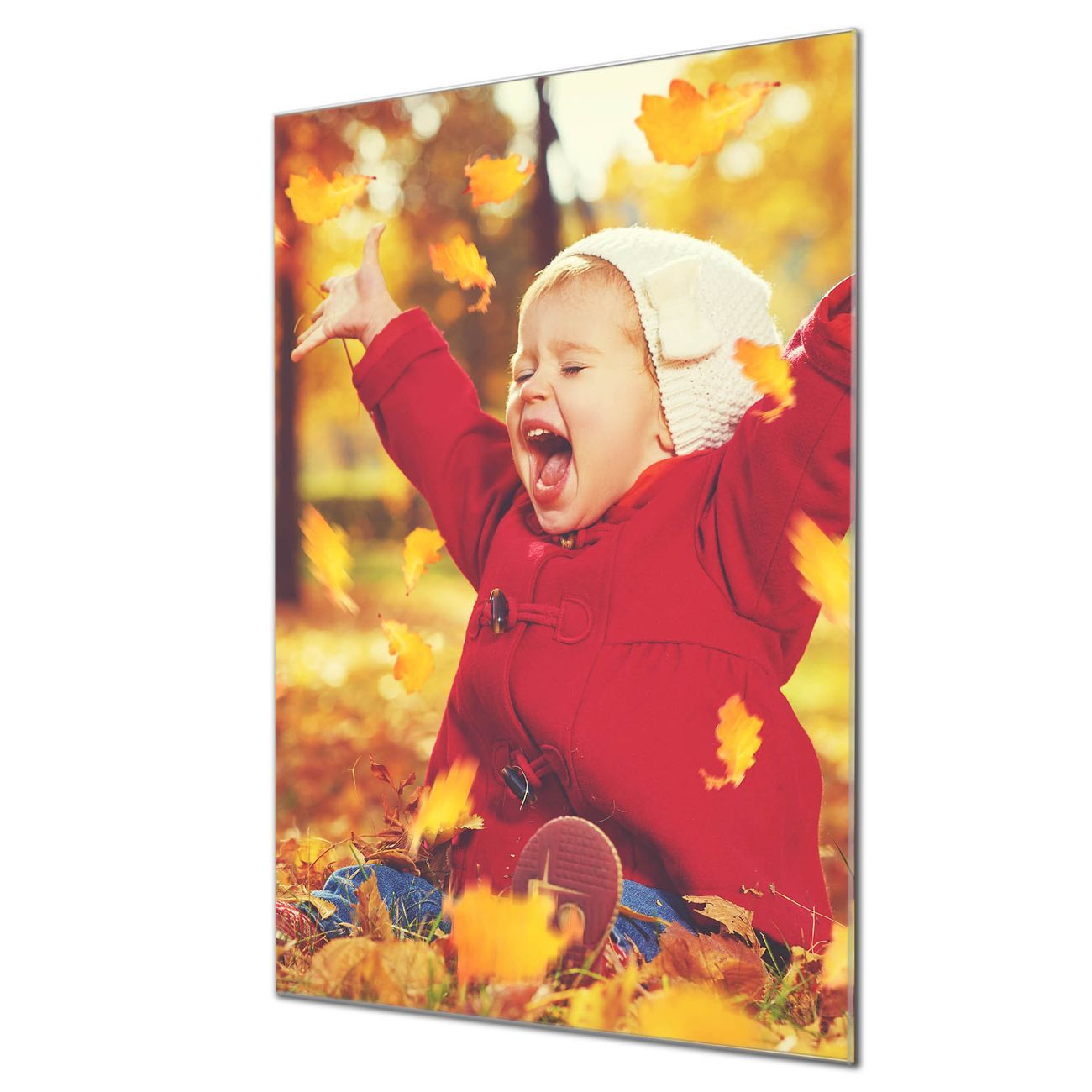 Brillantes Glasbild im Hochformat Herbstfreude