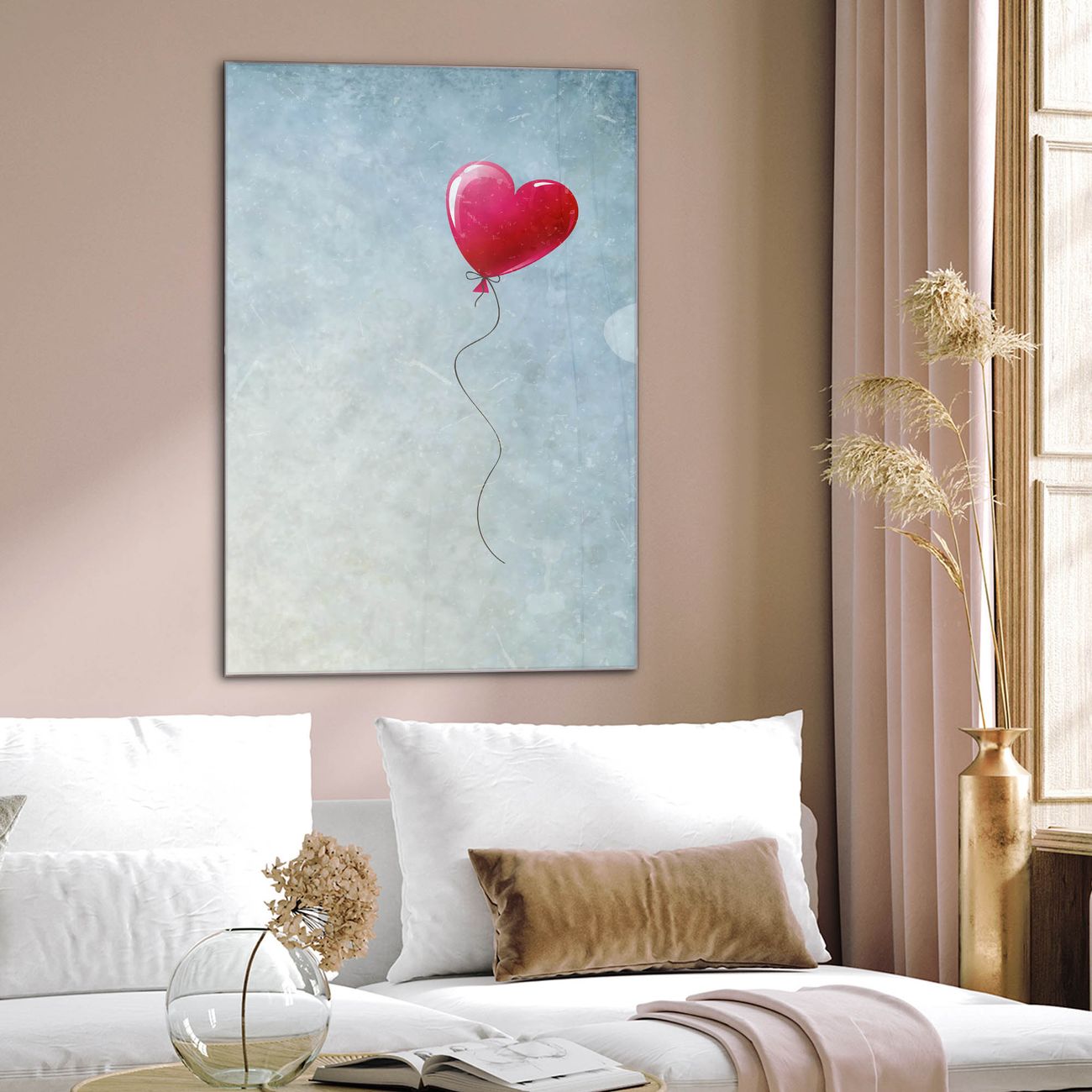 Brillantes Glasbild im Hochformat Herzballon