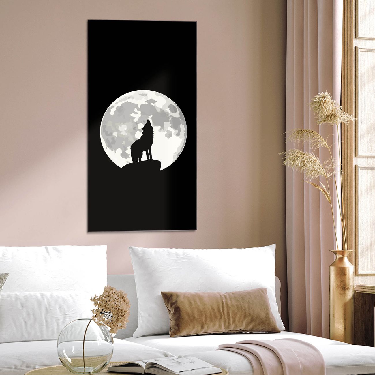 Material  4mm Sicherheitsglas mit Metallrückwand Eigenschaften  farbbrillant, kratzfest, rahmenlos Maße  50x100x0,6cm, 7,50 kg schwer Motiv  Nummer 11023 Heulender Wolf SW