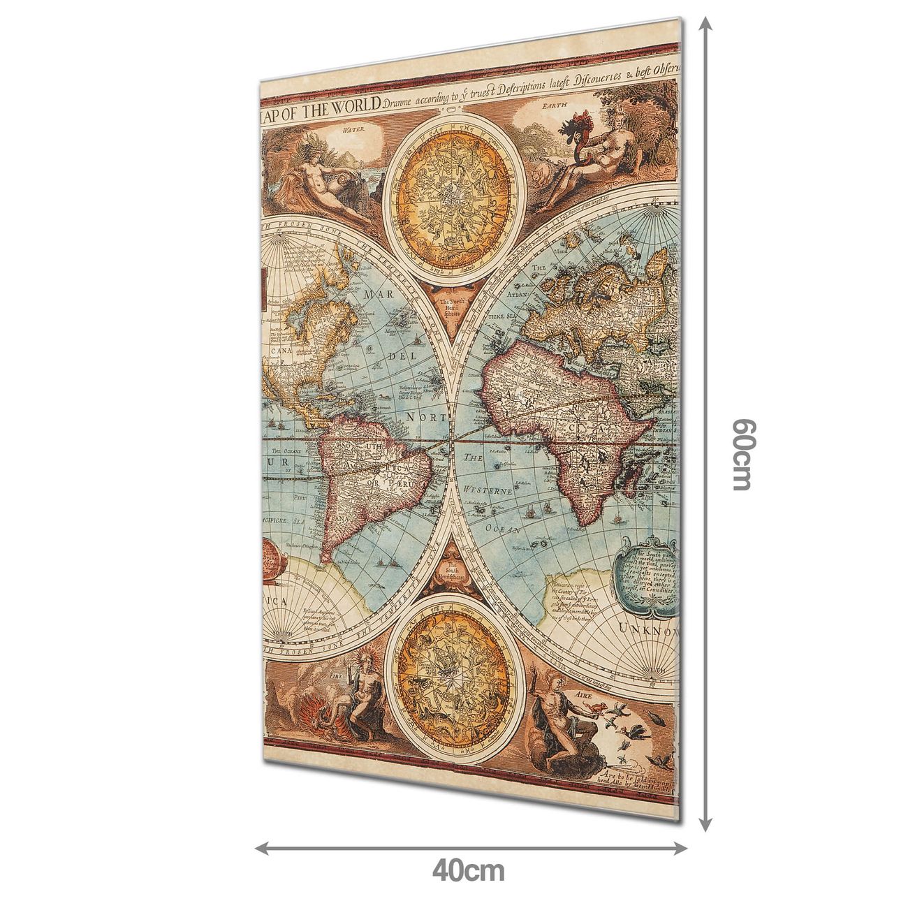 Brillantes Glasbild im Hochformat Historische Weltkarte