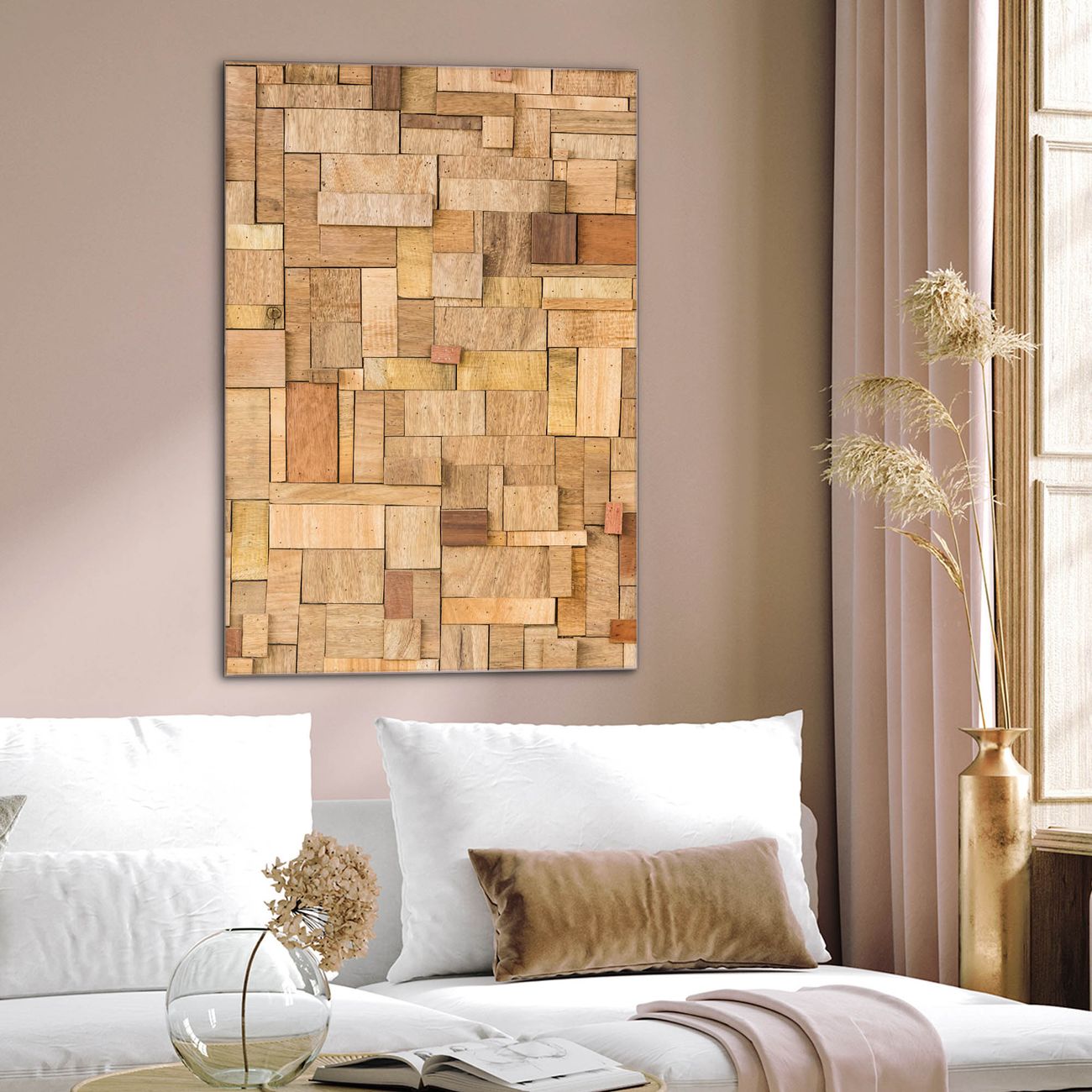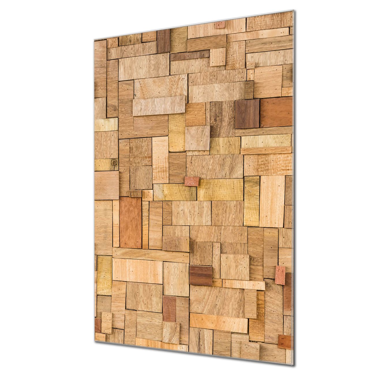 Brillantes Glasbild im Hochformat Hölzernes Flickwerk